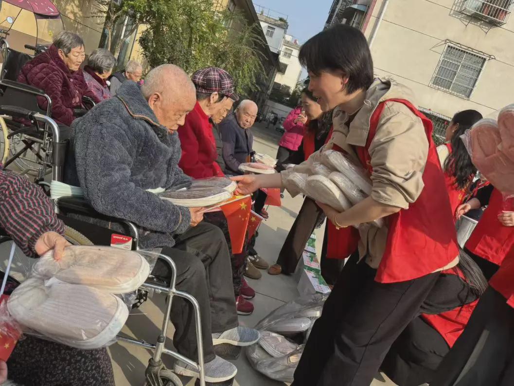 当日下午,信阳市第三实验小学党总支、工会、文明办联合组织师生志愿者,前往五里墩养老中心开展敬老活动。活动现场,志愿者老师为老人们送上拖鞋、牛奶等慰问品,细致关怀老人们的日常起居;学生们则手捧写满真挚祝福的手绘贺卡,逐一递到老人手中,还轻轻为老人捶背揉肩,用行动传递暖意。随后,学生们献上活力十足的舞蹈,灵动舞姿赢得现场阵阵掌声;叶老师也倾情演唱经典老歌,温馨场景让老人们脸上洋溢起灿烂笑容。
