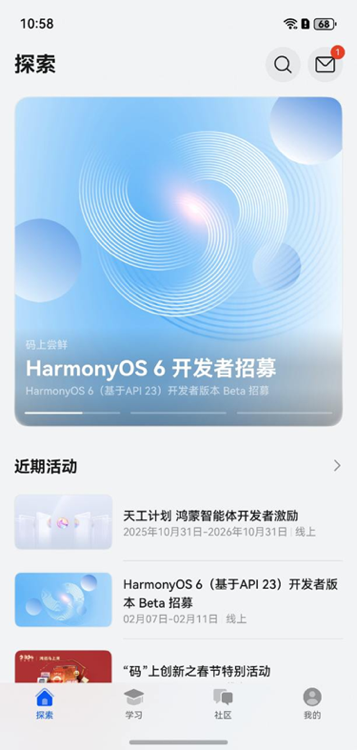 目前,HarmonyOS 6开发者版本Beta招募活动正在火热进行中。本次招募活动报名时间为2026年2月7日至2月11日 10:00,想尝鲜体验的用户要抓紧时间报名了。