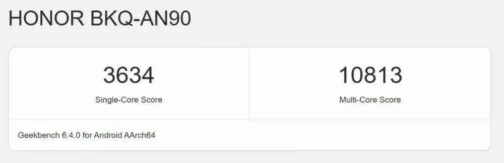 对比来看,此前还有一款型号为BKQ-AN90的荣耀旗下新机现身了 Geekbench跑分。