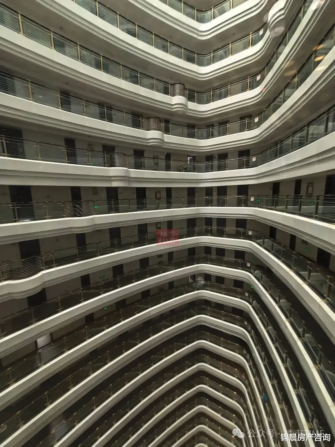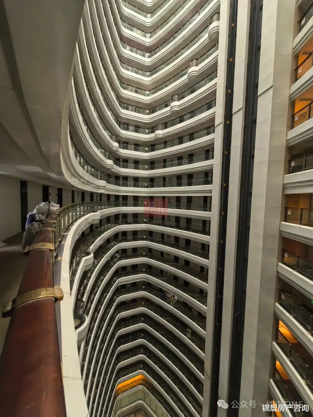 但真正让这栋楼在短视频时代二次翻红的、全网出圈的,是那两部被称为 “青岛最刺激的观光电梯”。维多利亚广场80米挑高的全透明中庭,配上全景观光电梯,还有一圈环形回廊,电梯往上升的时候,那种视觉冲击,科幻感拉满。