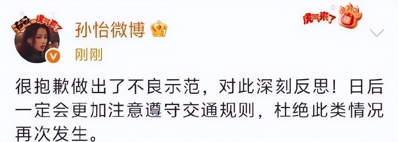 作为深受大众喜爱的艺人,孙怡的一举一动都具有示范效应,而交通规则关乎每个人的生命安全,容不得半点疏忽。