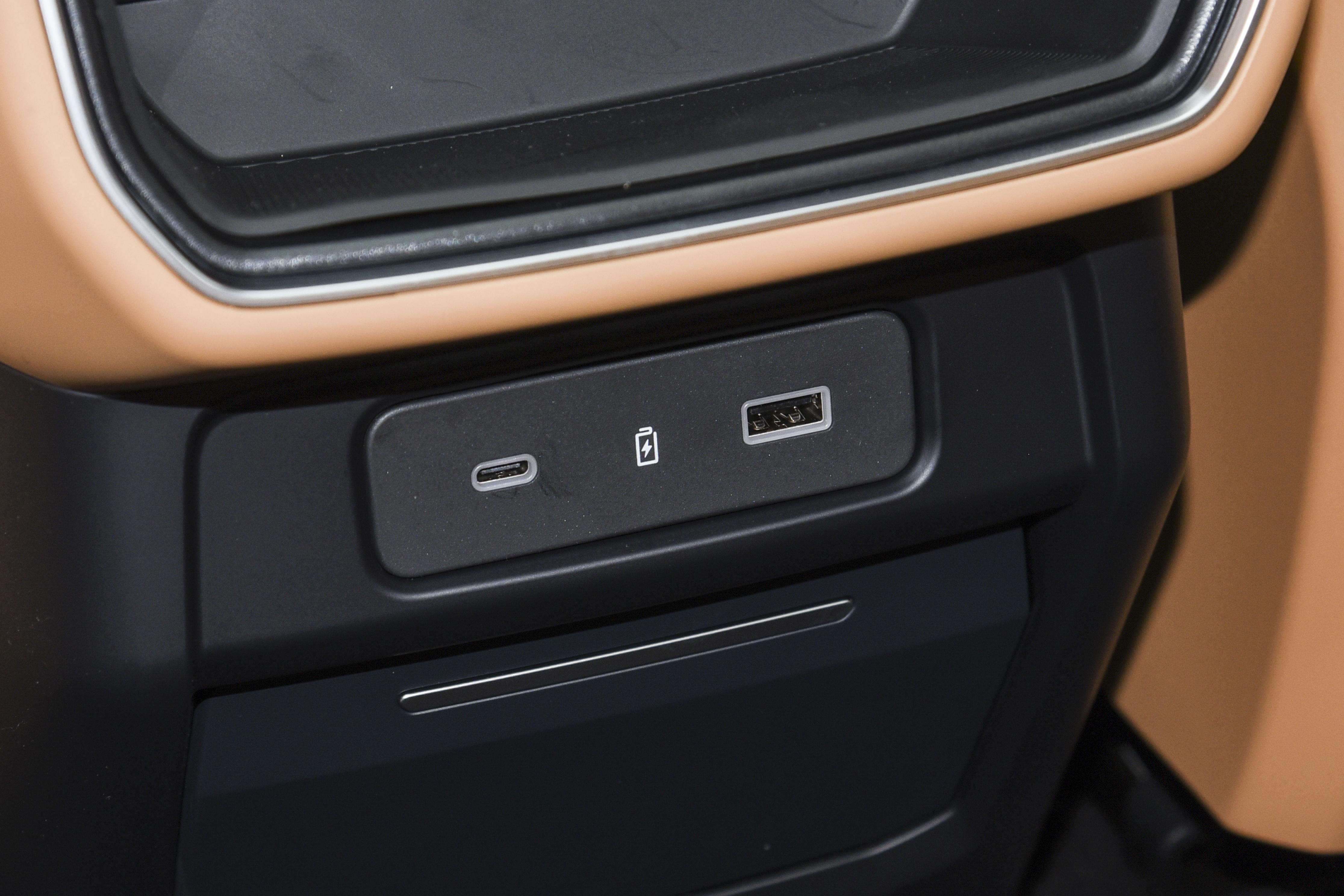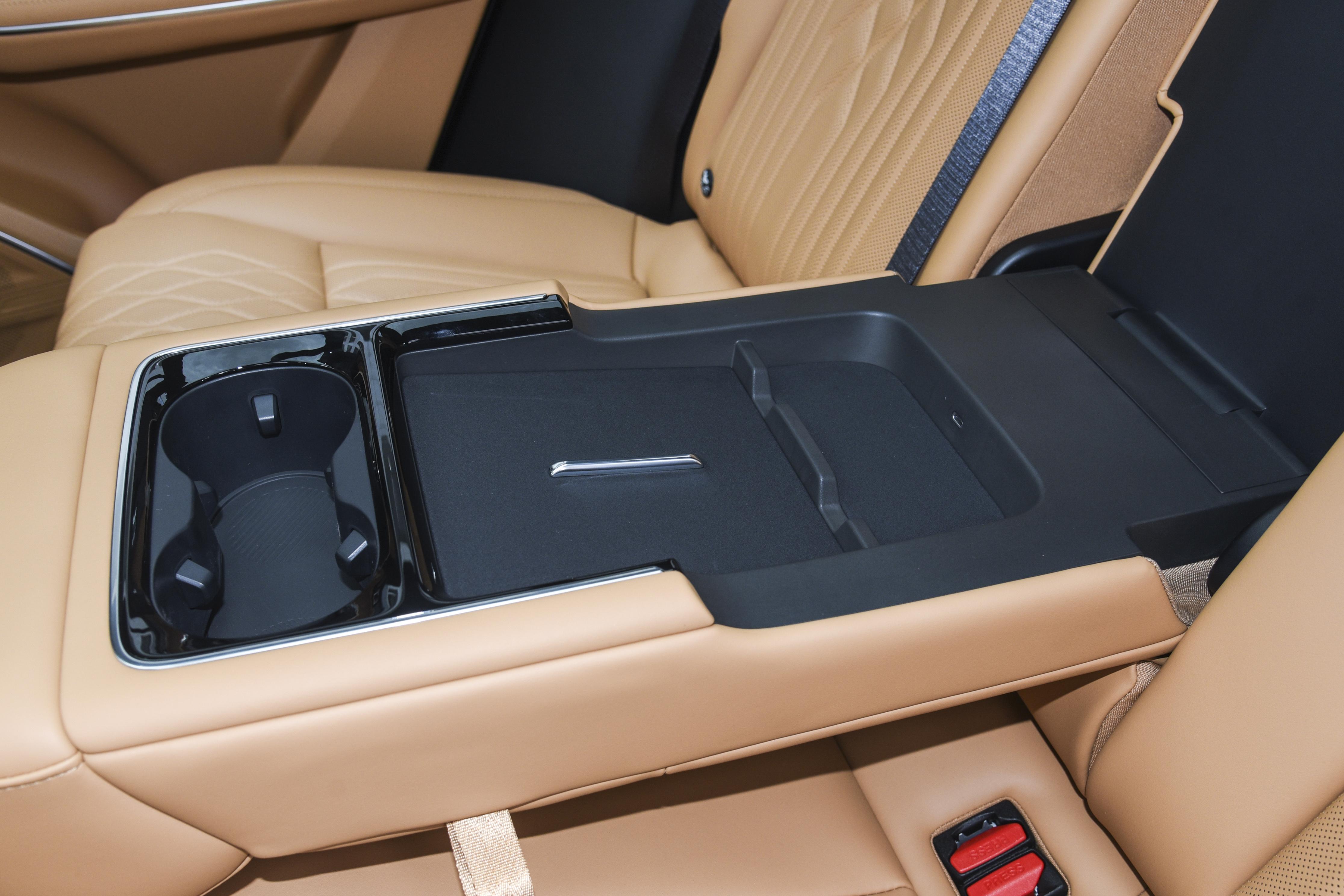 不同版本在座椅配置上存在差异,Ultra 版配备了 “女王副驾”,带有电动腿托与腰部支撑调节功能,能够为前排乘客提供更贴合身体的支撑,减轻长途乘坐的疲劳感。二排座椅全面支持通风、加热与按摩功能,同时新增了小桌板与多功能中央扶手,其中多功能中央扶手集成了双开式杯托、手机储物格、隐藏式暗盒及 USB 充电接口,进一步提升了日常使用的便利性。