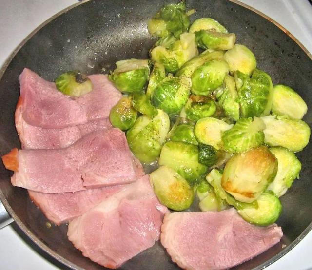 煎抱子甘蓝:在平底锅中加入橄榄油,中火加热。加入切片的抱子甘蓝,翻炒5-7分钟,直至变软,最后用盐、胡椒和柠檬汁调味。