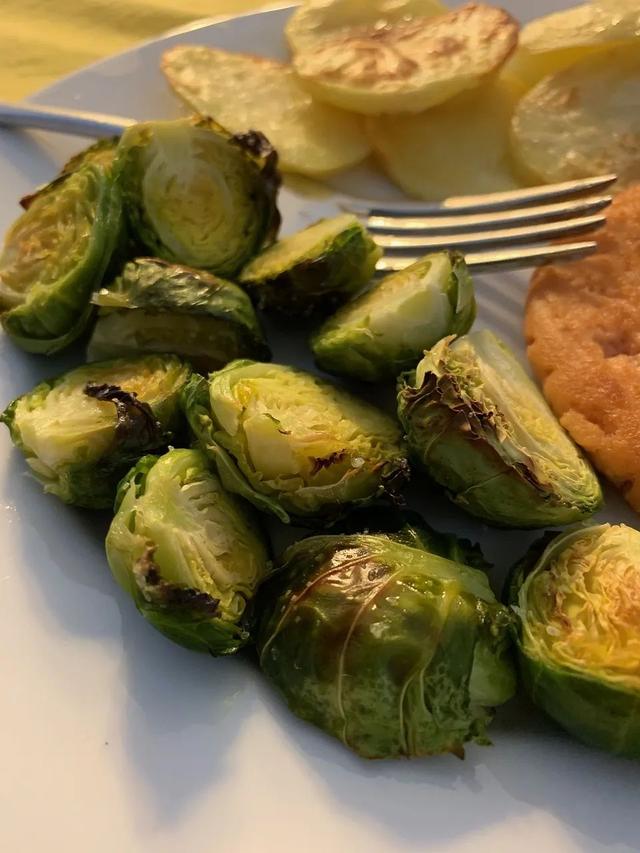 烤抱子甘蓝:将抱子甘蓝(你可以先把它们切成两半或四半)与橄榄油、盐和胡椒粉混合,放进200°C的烤箱中烤20-25分钟,直至颜色金黄,表皮脆嫩。