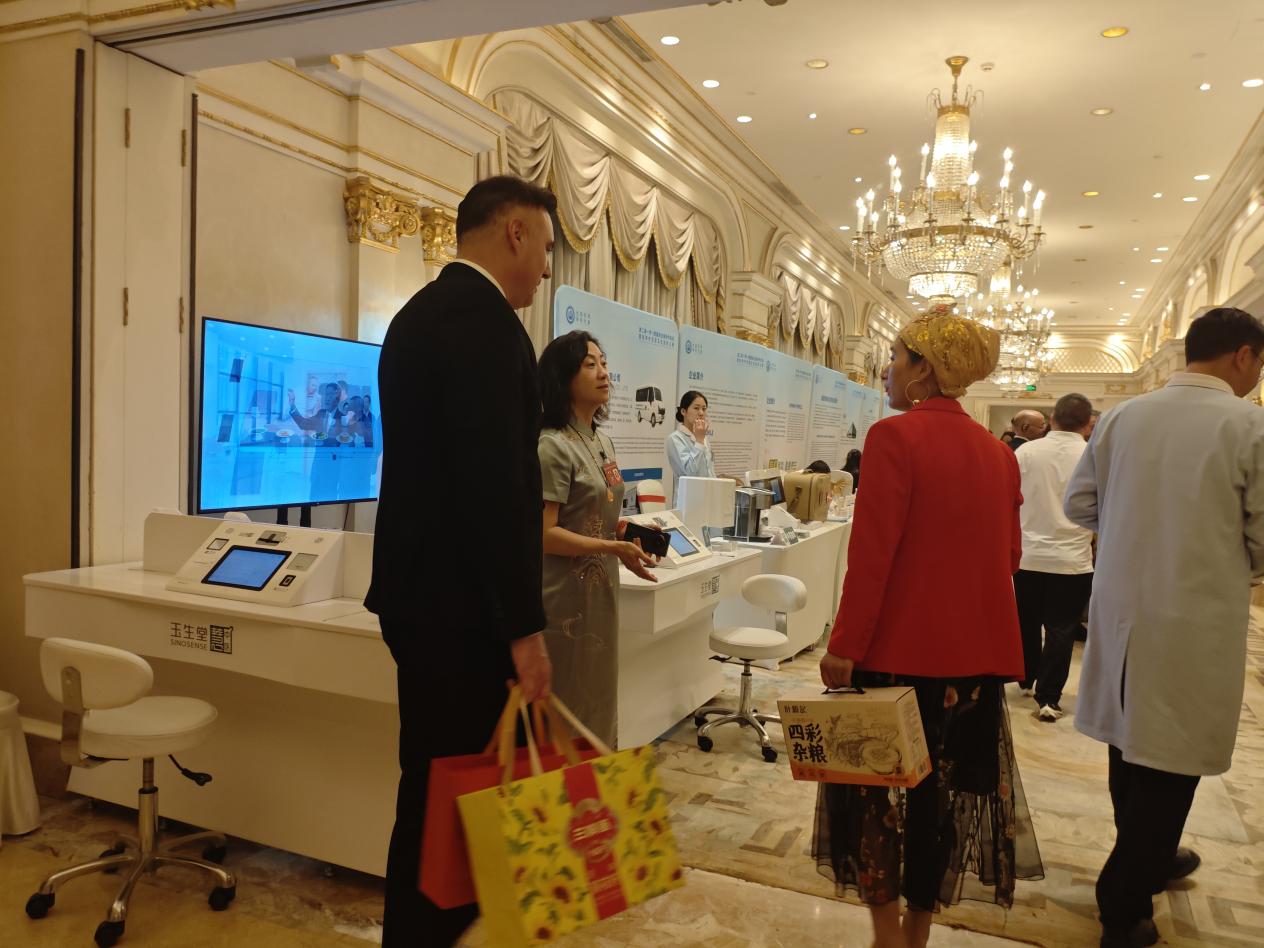 论坛期间,玉生堂设置的智能中医体验区成为参会嘉宾关注的焦点。与会嘉宾亲身体验了“中医AI诊断机器人”“经络检测理疗仪”“穴位疼痛理疗仪”等设备,系统通过高清成像、生物信号分析及AI算法,几分钟内生成包含体质辨识、健康预警和调理建议的个性化报告。他们纷纷赞叹,通过简单几项检测,就能分析身体内脏的状态,用生物电模拟针灸、按摩、推拿的玉生堂智能理疗设备,能够迅速缓解疲劳和关节疼痛,现代化中医太神奇了。来自非洲、中东等地区的外交官们表示,该系统“将复杂的中医诊断可视化,令人惊叹”,并期待引入本国应用。