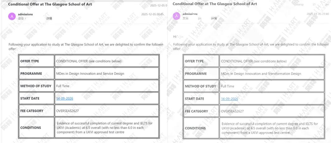 G同学 获 格拉斯哥艺术学院 设计创新与交互设计 MDes 格拉斯哥艺术学院 设计创新与服务设计 MDes等offer