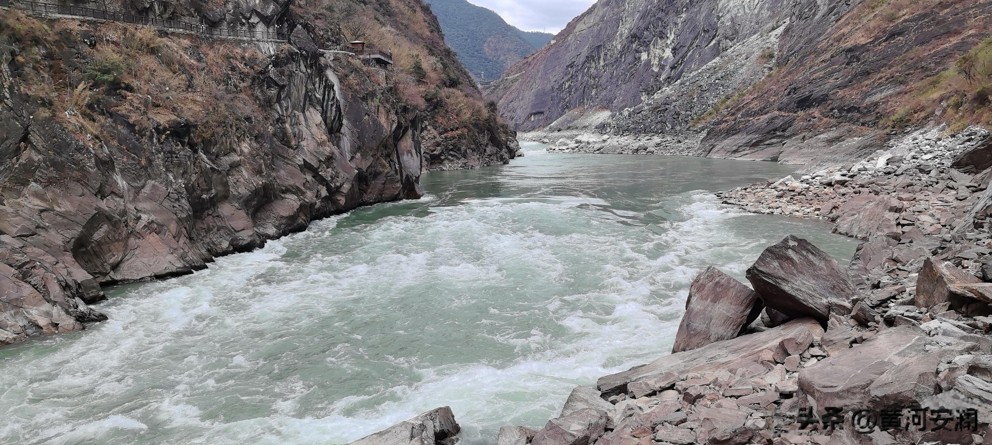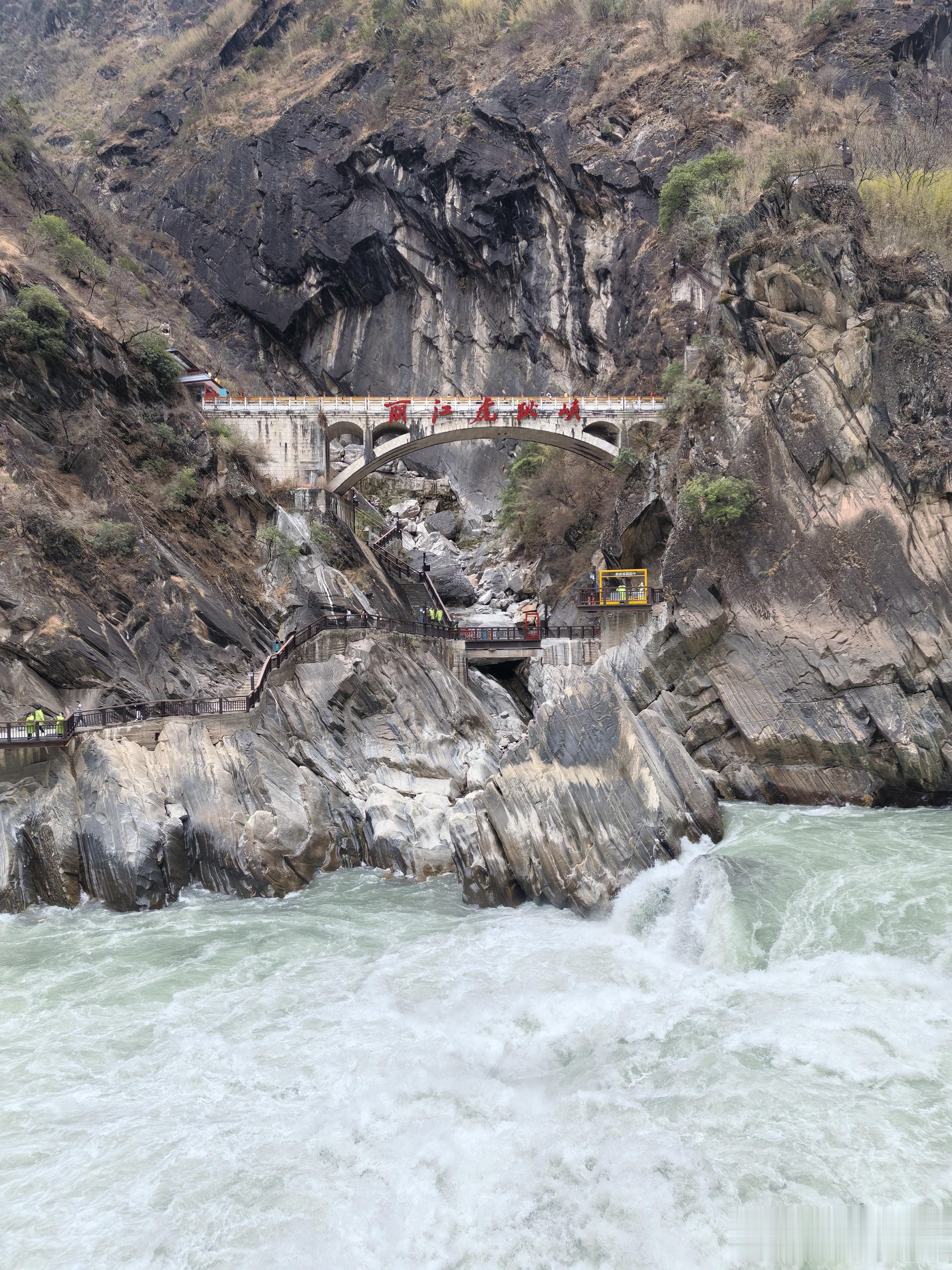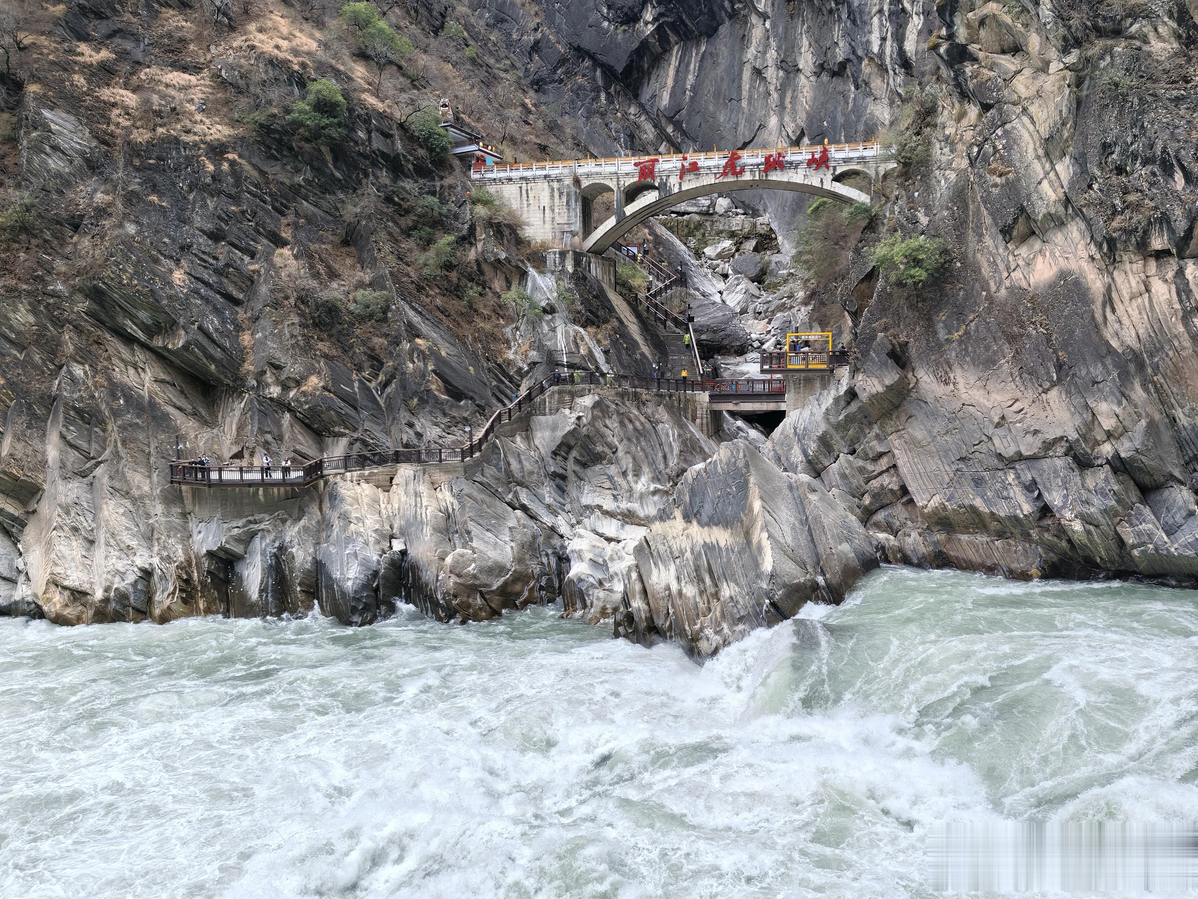 景区里设了好几个观景台,每个角度看的景致完全不一样。有的看江面全景,有的近距离感受水雾扑面,还有的能完整看到虎跳石被江水"围攻"的震撼画面。我来回窜了三个观景台,手机内存都拍满了。