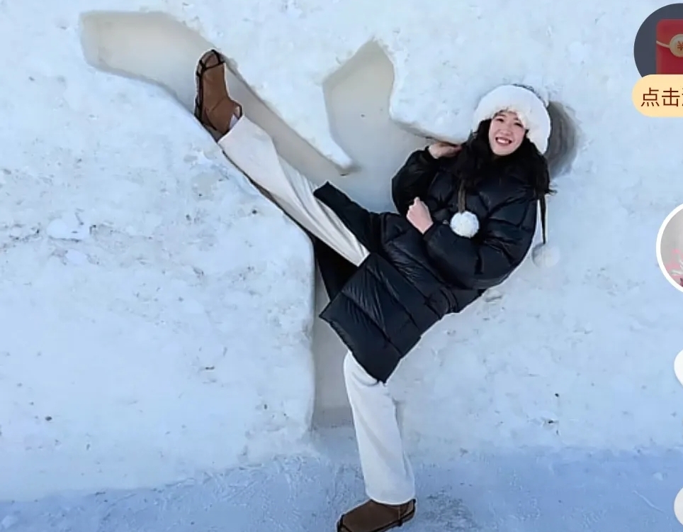 主攻手李盈莹穿上厚厚的羽绒服,白色的防寒帽子,先在冰雪大世界的城堡前美美的拍上一张照片!人生中除了有排球,还有生活!