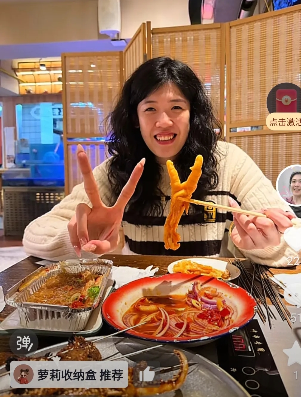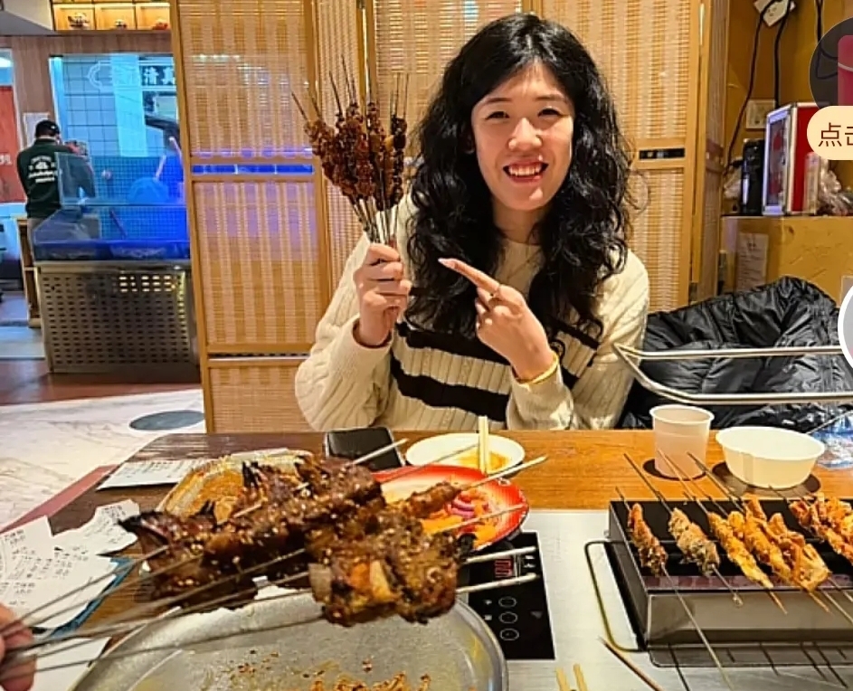 快看,羊肉串,凤爪,鱿鱼,有这么大!东北烧烤真是不错!妹妹李盈莹放开了吃,难得假期过年期间没有比赛任务,可以回老家过年。