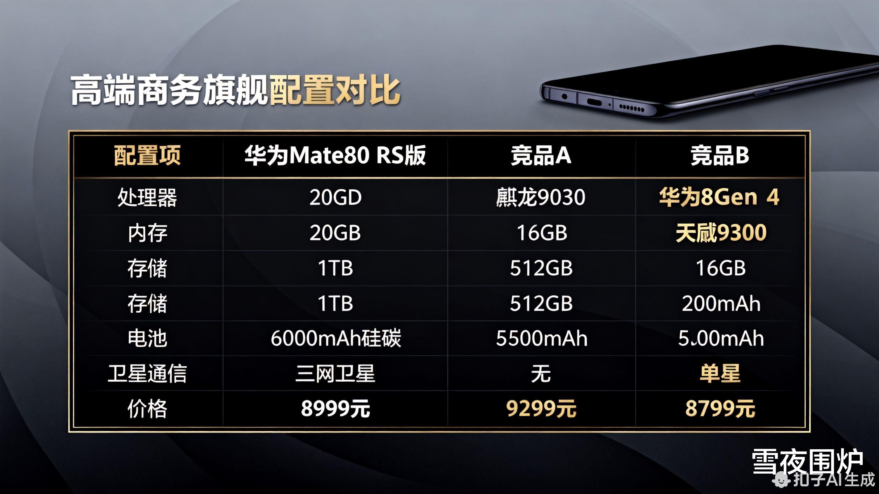 锚定高端替代需求:对比苹果折叠屏预期价(12999-15999元),以直屏旗舰形态提供同级卫星通信能力,攻占商务用户换机市场。