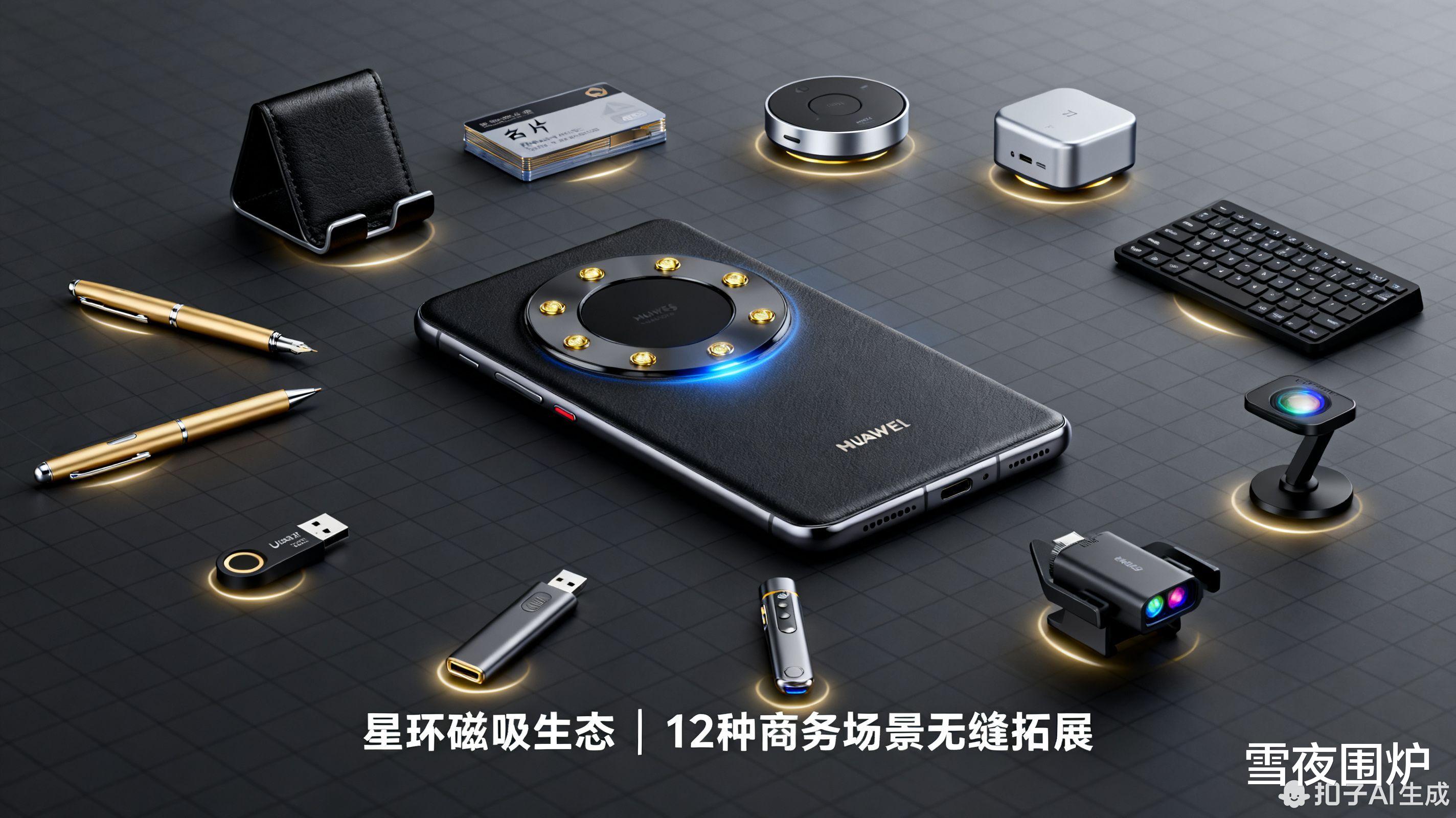 星环磁吸设计:底部磁吸环支持外接键盘、检测仪等商务配件,拓展12种专业场景,重新定义"生产力工具"。