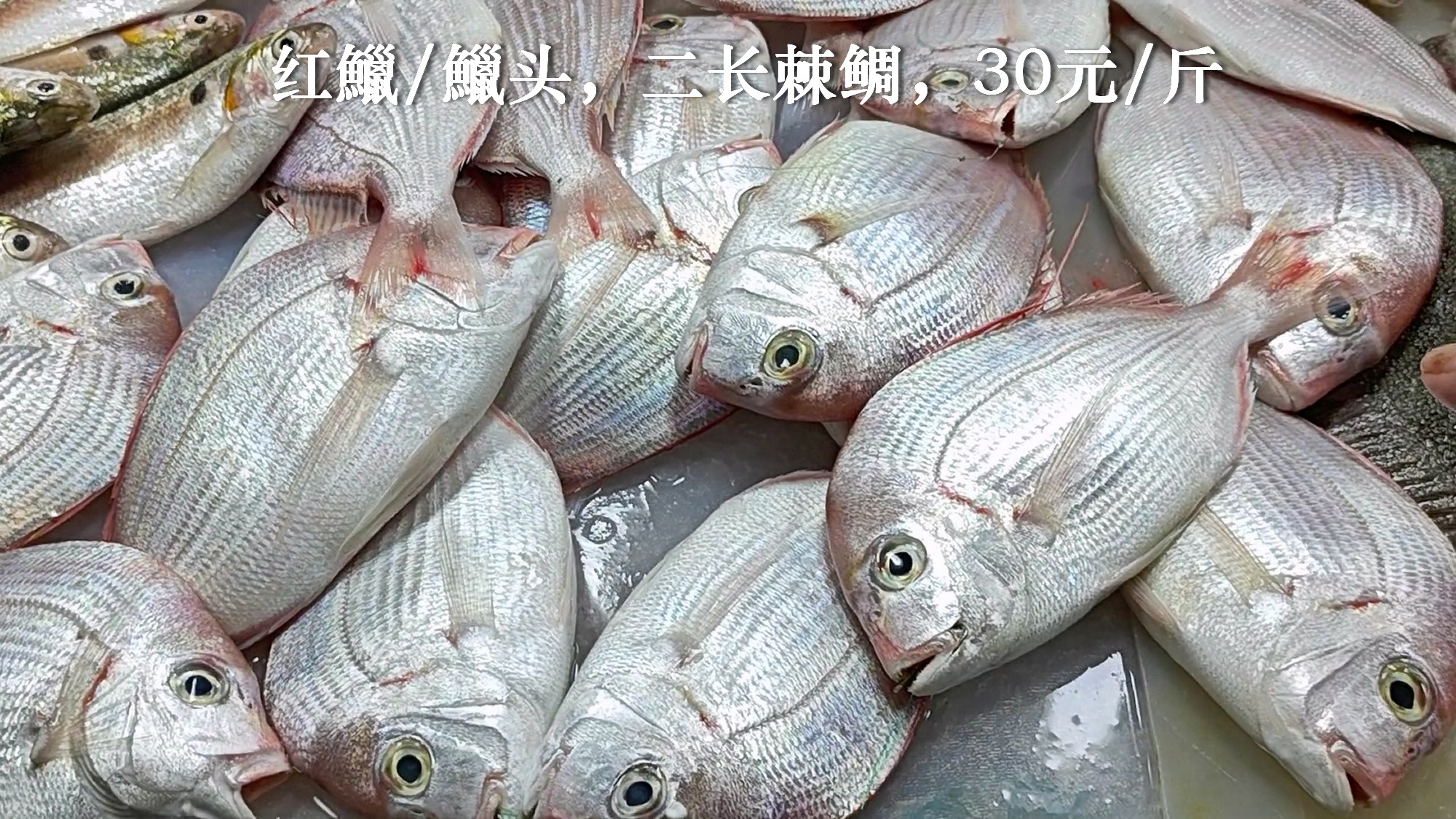 6、红鱲/鱲头,二长棘鲷,30元/斤。红立很好吃的,所以不够半斤的要30,比黑鱲贵得多。