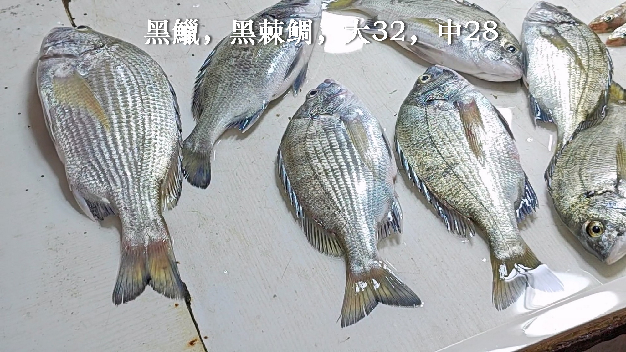 5、黑鱲,正名:黑棘鲷,25-38/斤,黑鱲数量不算多,但规格不小,最大一斤上的38,中等的28-32一斤,始终肉质偏粗,觉得小贵。