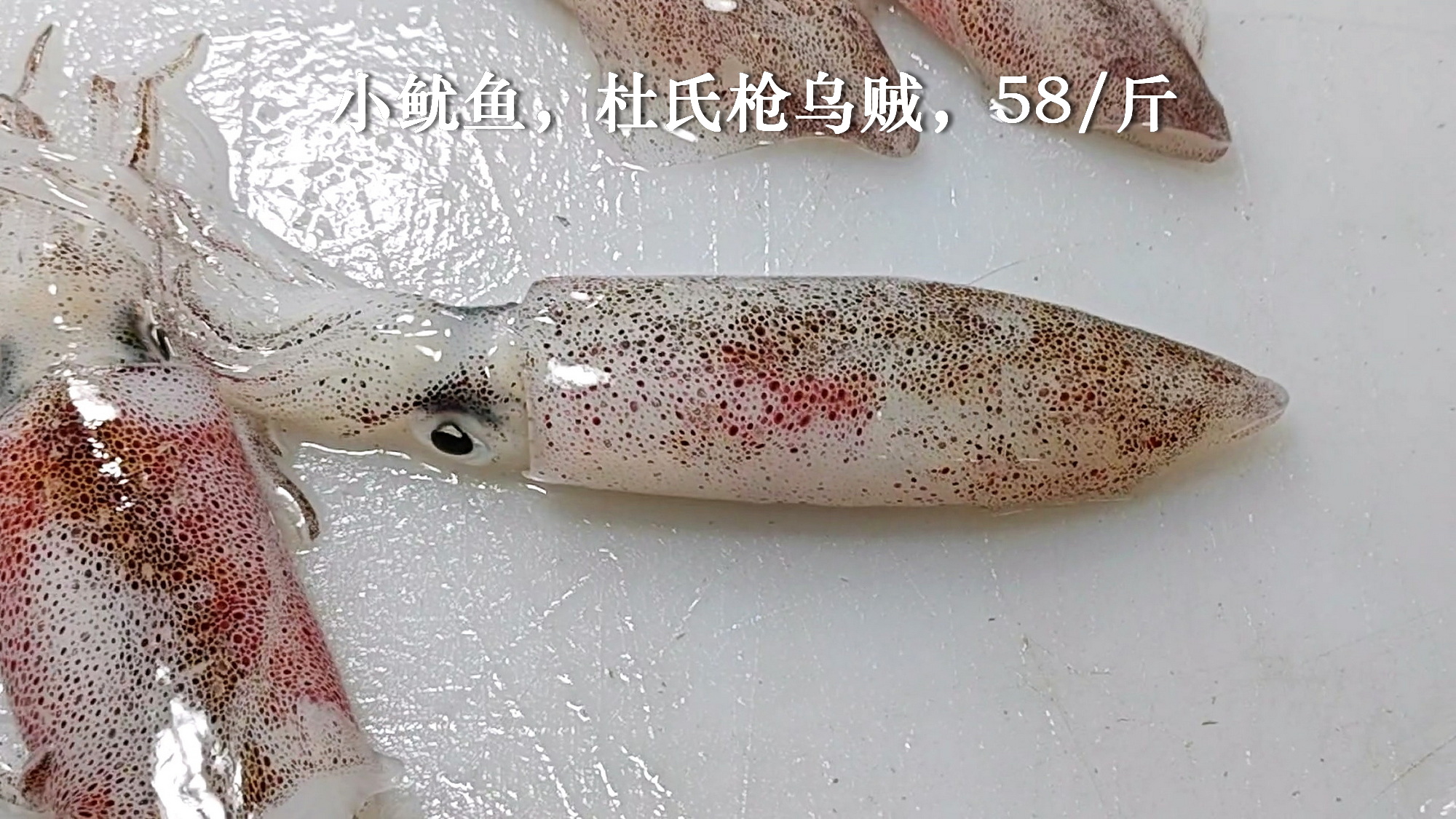 四、头足类:1、小鱿鱼,杜氏枪乌贼,58/斤,色素细胞还在闪动,流口水了。