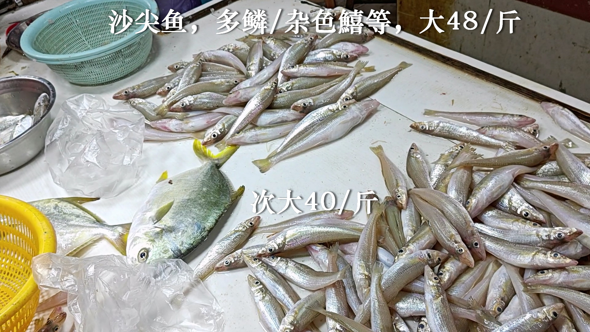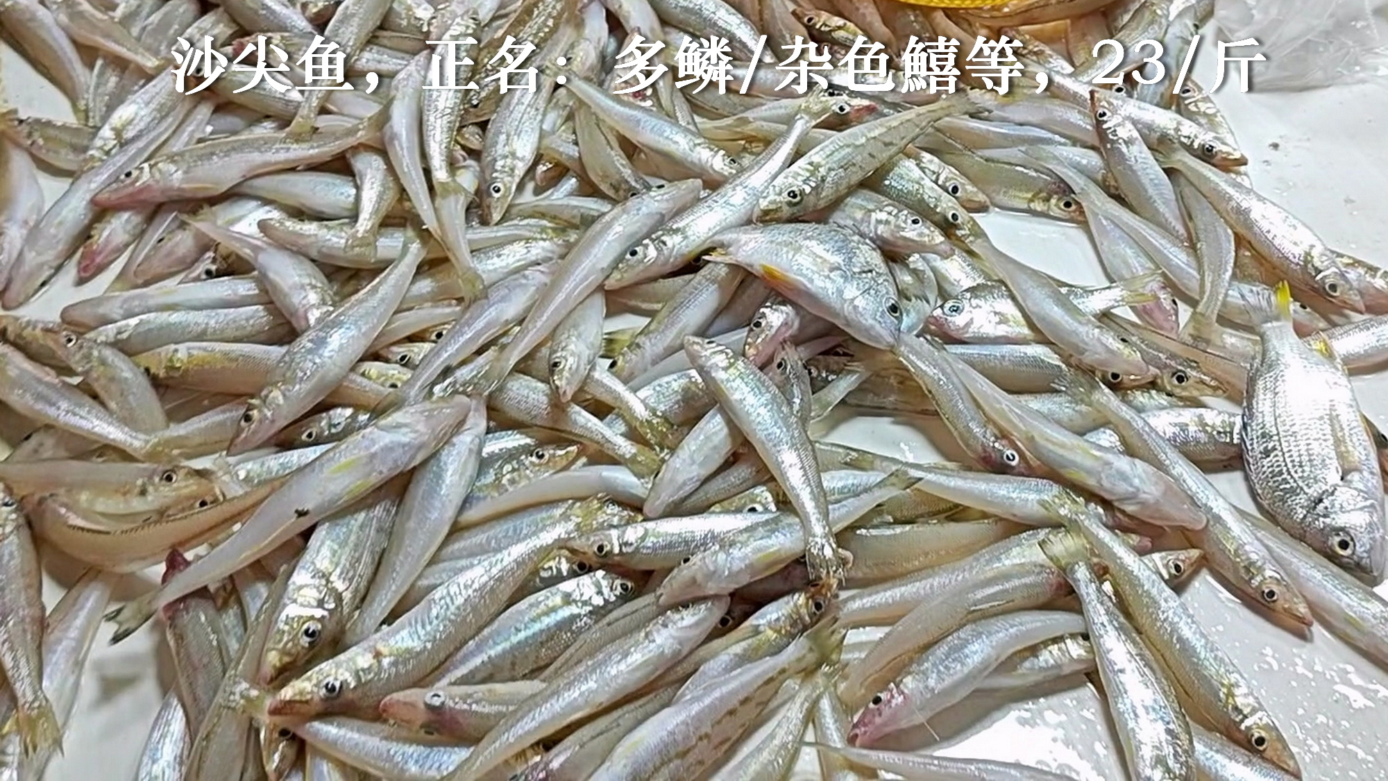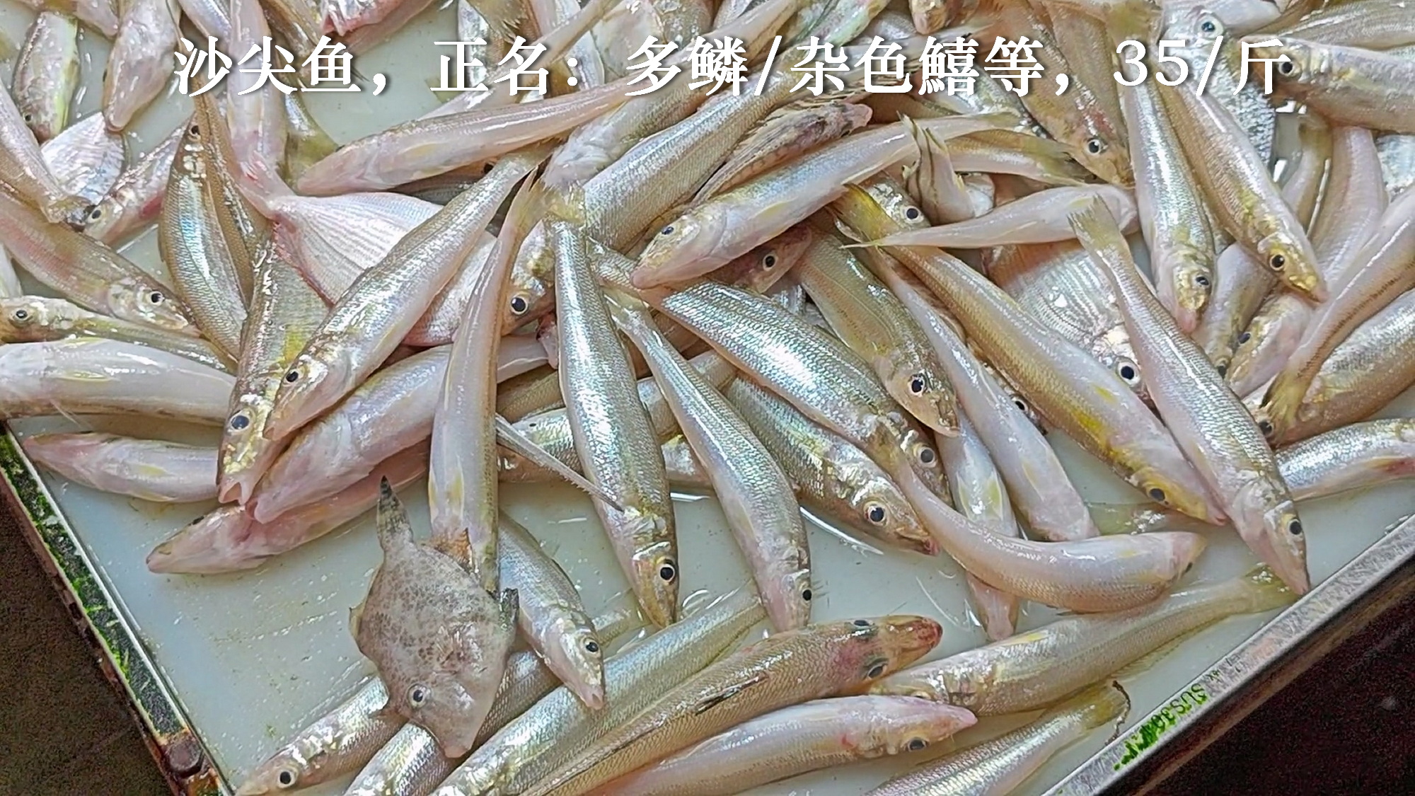 15、沙尖鱼,正名:多鳞鱚、杂色鱚等,23-45/斤。总体有点贵,但还是很多人买。这一档不算大要35元一斤。另一档小一点的23,中大的要40,再大一点要48元。