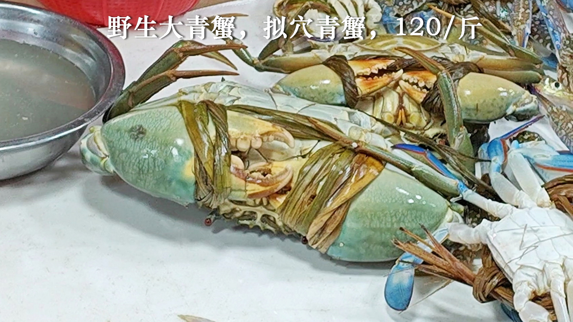 三、蟹类:1、野生大青蟹,拟穴青蟹,120/斤。野生青蟹这边各地常见,都是这个价。
