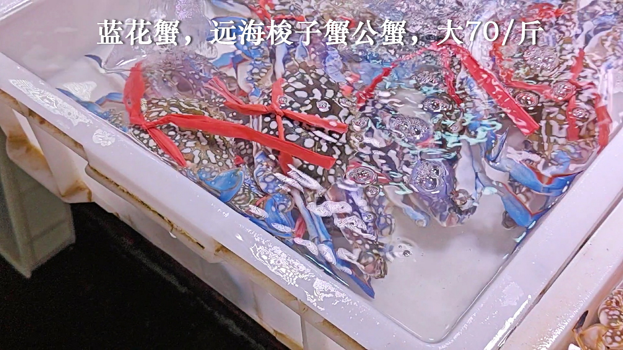 2、蓝花蟹,远海梭子蟹公蟹,大70/斤。其他价格按大小递减。