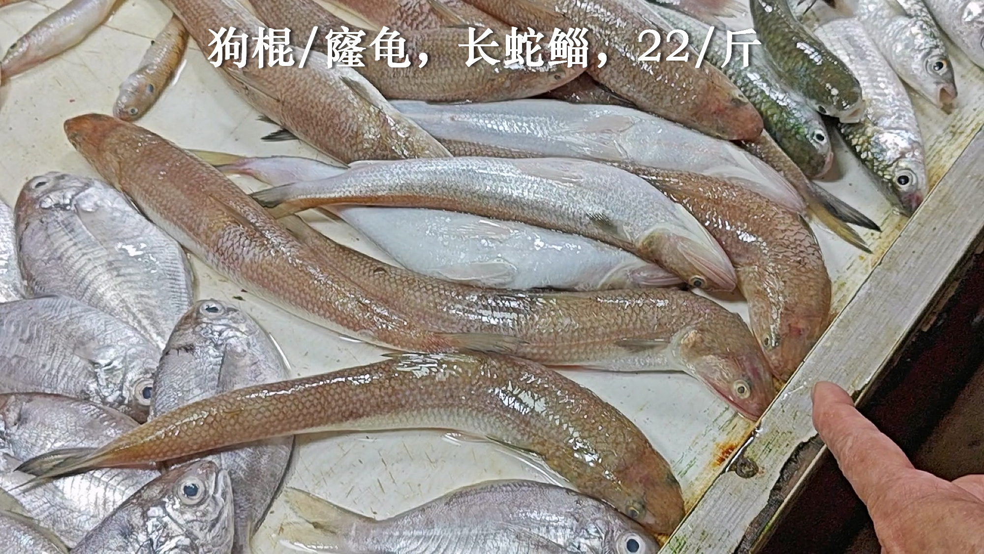 17、狗棍/窿龟,长蛇鲻,22/斤。它鱼味鲜甜,但有很多小刺,低档鱼,没想到要22元。