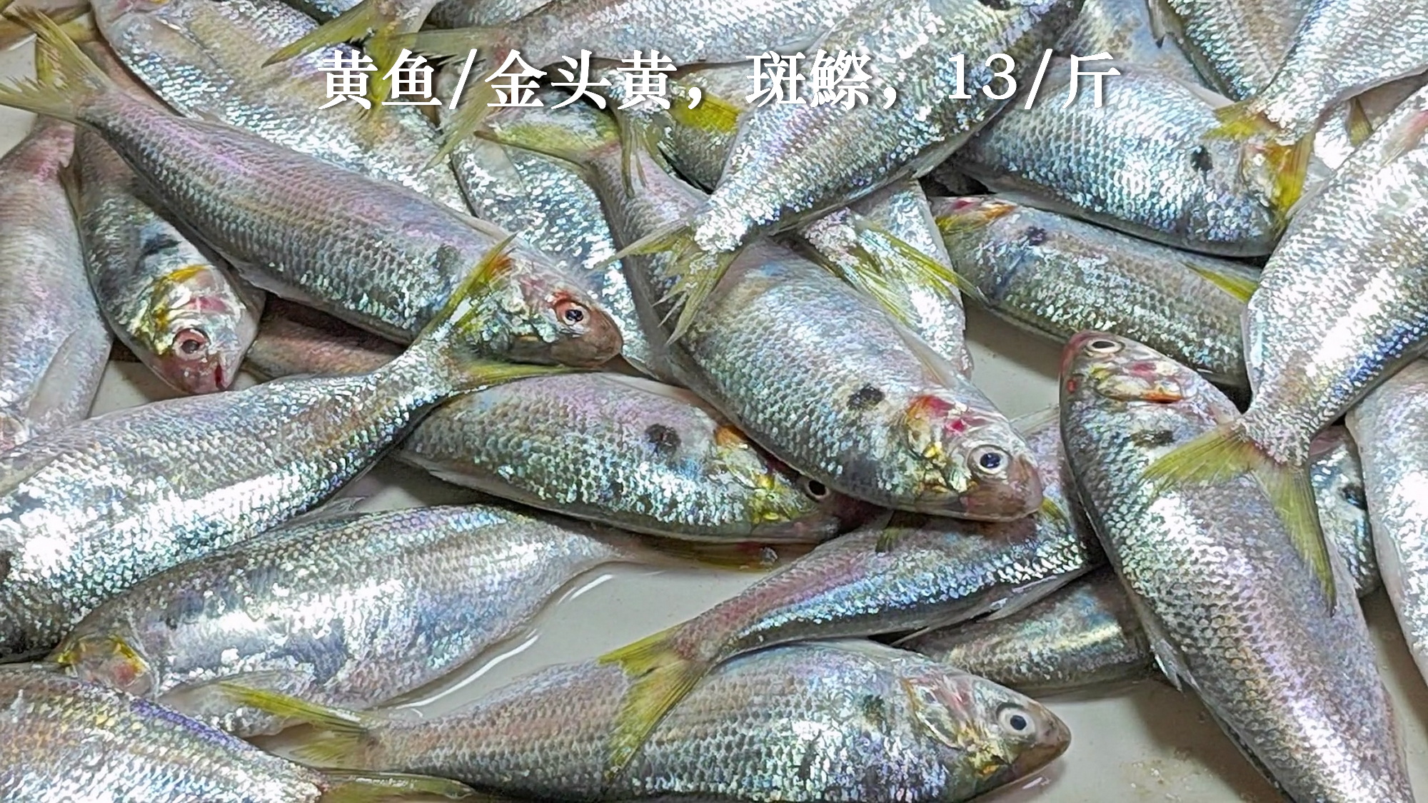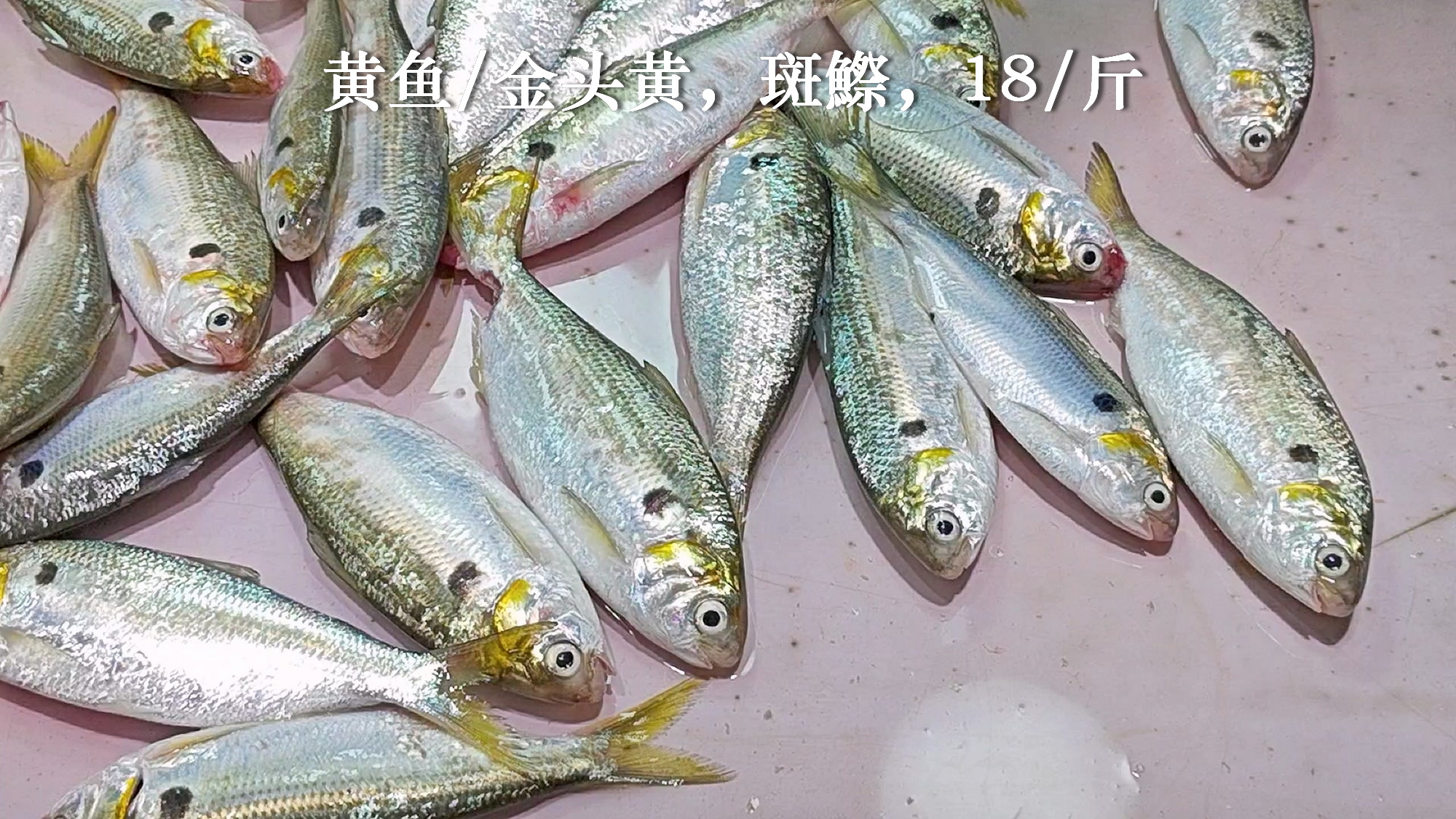 20、黄鱼/金头黄,斑鰶,13-18/斤。黄鱼小刺多,但干煎极香,一家开价13,一家18,差得有点多,奇怪。