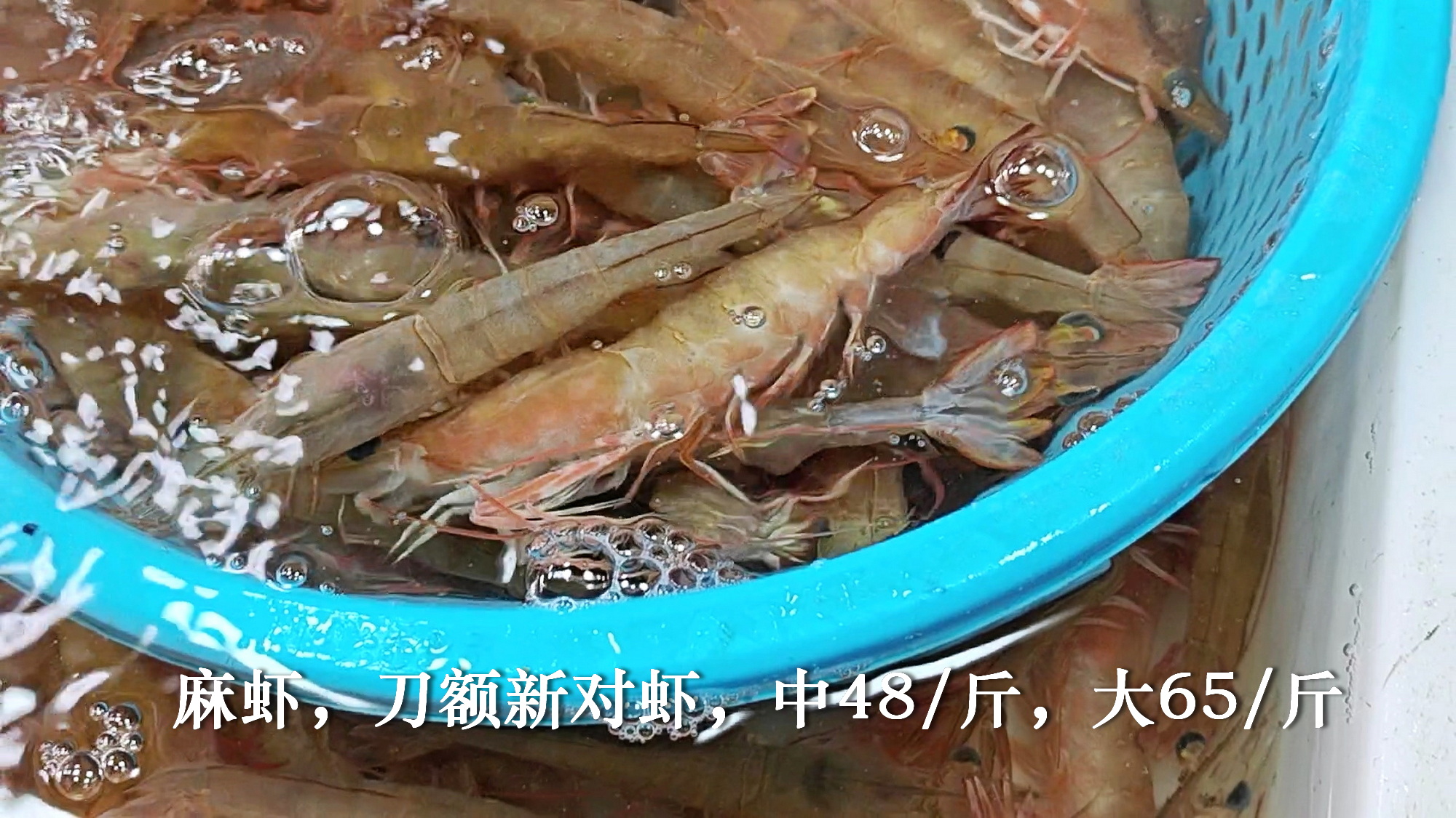 2、麻虾,刀额新对虾,中48/斤,大65/斤。麻虾鲜甜爽脆,很好吃,比广州的状态好得多。