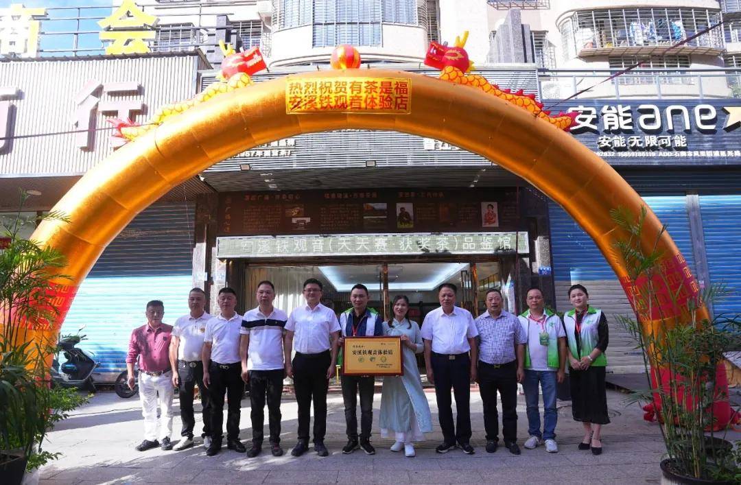 ▲安溪县人民政府副县长卢荣斌、安溪县一级调研员、安溪县茶业发展促进会会长陈春买为泓楷茶业、有茶是福、芯源和茶业、福建九壶贸易有限公司颁发“安溪铁观音体验店”证书