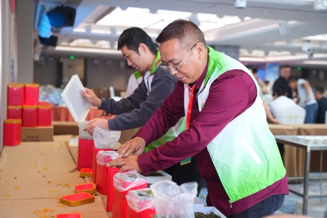 ▲泉州市茶业交流协会副会长兼秘书长陈家祥,安溪县祥华乡党委副书记、政府乡长林少斌,石狮市原纪委监委二级调研员杨鸿波为优质奖获得者颁奖
