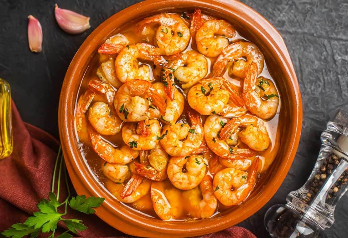 比如蒜香虾(Gambas al Ajillo),是把大虾和蒜片放到橄榄油里煎炒而成。蒜香虾的黄金搭档是著名的塔帕斯(Tapas),最后也是用面包蘸着吃完剩下油。