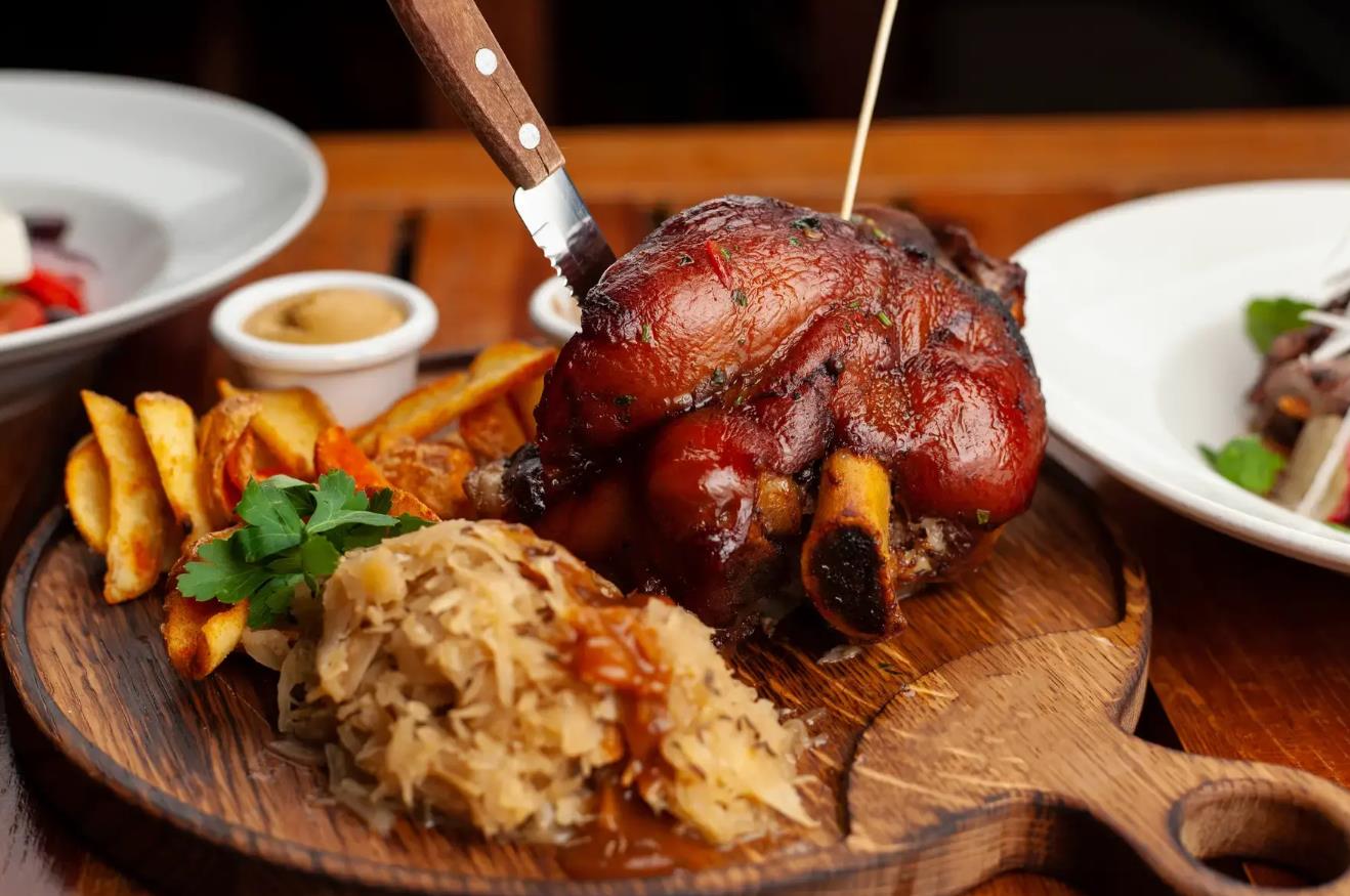 在德国,你可以点烤/炖猪肘配酸菜、德式香肠大拼盘和维也纳炸猪排。