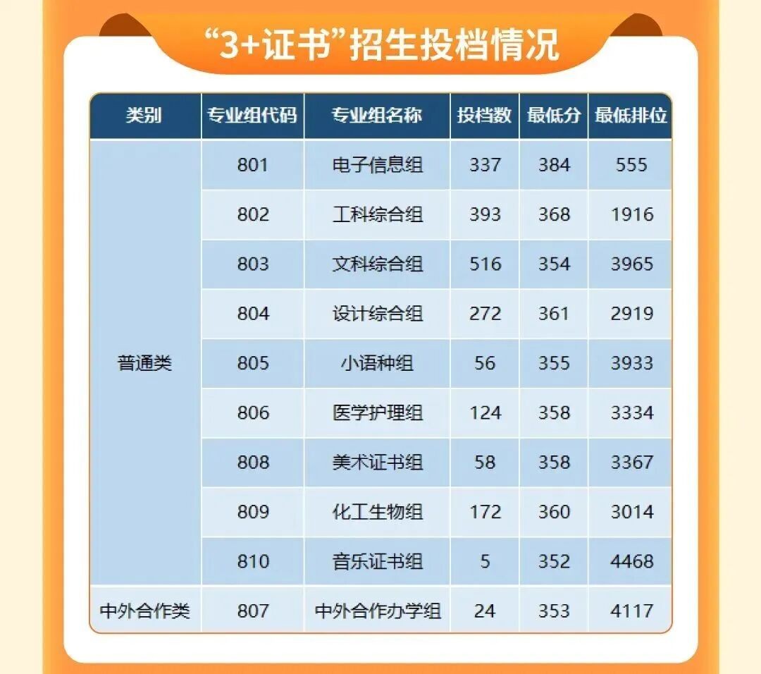 了解完大致信息,接下来跟随新易学小编脚步一起来盘点这些院校在25年3+证书中的本专科批次录取分数线。