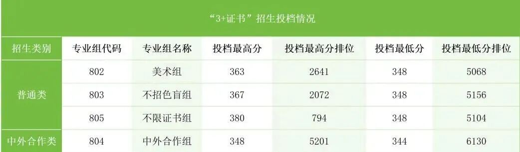 该校在3+证书考试中历年都是招生计划偏少数那一类。且招考专业均要求考生有相对应的证书,所以该学校整体报考难度较大!