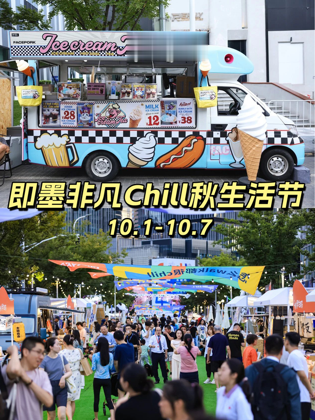 即墨非凡Chill秋生活节「即墨路限时步行街」集聚40余家特色品牌,包含时尚餐车、地道美食、优质文创和游戏互动等。初秋的夜晚与亲朋好友随心漫步,品味美食,享受假期的chill时光吧~10月1日-10月7日 14:00-21:00即墨路银城路以北段