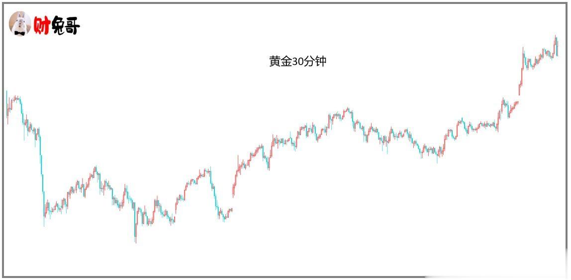 转换至小周期30分钟交易,我们应以4小时的颈线作为重要关键位,价格在颈线之上看多做多,但是价格偏离颈线过高,我们的入场就较高,风险就增大,所以最佳的入场位是在颈线附近,因为颈线是关键的支撑位或是头肩底形态的防守位。