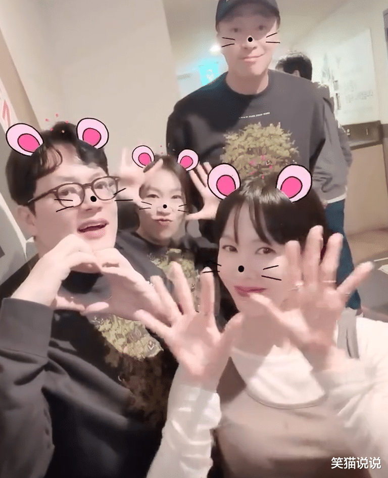 在准备上台宣传电影之前,孙艺珍还和几位同事在休息室里拍了一段搞怪视频。视频里的几人都配上了可爱的卡通滤镜,对着镜头会上打招呼,彼此都很欢乐的样子。