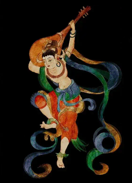 要知道《敦煌飞天》可是莫高窟壁画的标志性形象,现存4500余身,贯穿十朝逾千年,堪称世界美术史上的奇迹,经西域文化与中原道教羽人形象融合,形成“无翅凭带而飞”的独特风貌——以飘曳衣裙与飞舞彩带勾勒凌空姿态,摒弃羽翼与圆光,尽显东方写意美学。