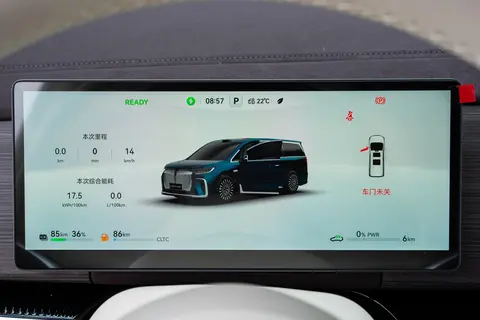 满油满电的时候综合续航 1530 公里,我算了下,从我们这到北京大概 1200 公里,中间补一次油或者电就能到,不用频繁找服务区。油耗方面,亏电的时候 WLTC 工况 5.26 升 / 100 公里,我开了 100 公里市区路,亏电状态下表显油耗 5.5 升左右,跟同级别的 MPV 比,这个油耗真不算高 —— 毕竟这么大的车,能做到这个油耗已经很不容易了。