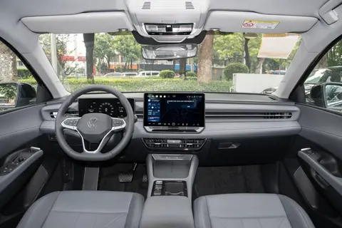 外观用了上汽大众的家族式设计,横幅式进气格栅和LED大灯自然连在一起,整体看着舒展大气,没有多余的复杂线条。这种不张扬的设计其实挺耐看,家用车就得经得起日常审美考验,开几年也不会觉得过时,就算以后换车,保值率也不会受设计影响。大灯内部结构精致,日间行车灯线条流畅,晚上点亮后光线均匀柔和,不仅辨识度高,照明效果也实用——傍晚接孩子放学,校门口光线杂乱,大灯能把路面照得清清楚楚;夜间走郊区小路没路灯,远光也能覆盖足够范围,不用操心照明不够。车身侧面线条修长匀称,车窗边缘的镀铬装饰点缀得刚好,既显精致又不浮夸,符合家用车的沉稳调性。