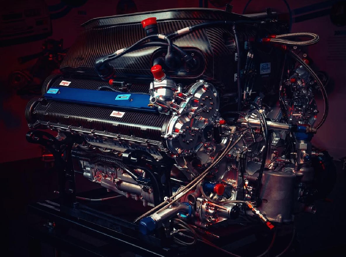 虽然红牛有自己的工程部门,但制造发动机一直不是强项,而是与福特、、雷诺、本田等公司合作,因此红牛的第一款车RB17选择了第三方供应商的引擎,由英国的考斯沃斯参与开发。这是一台排量4.5L的自然吸气V10,设计哲学直接源自90年代末的F1发动机:小活塞、短行程、高转速、低旋转惯量,红线转速达到15000 rpm,这要比普通的量产车转速快了一倍,高频尖啸的声浪,接近老式F1赛车,原始机械感也是这个时代缺乏的,这让红牛可以与其他跑车差异化竞争。