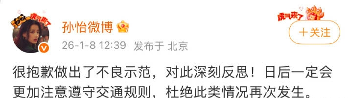 然而,另一部分网友则觉得人非圣贤,孰能无过。孙怡此次可能只是一时疏忽,并非故意违反交通规则。而且她在看到热搜后,及时发文道歉,深刻反思了自己的错误,并承诺以后会更加注意遵守交通规则,不会再让类似情况发生。这种知错能改的态度值得肯定,大家应该给她一个改正的机会,不必过于苛责。