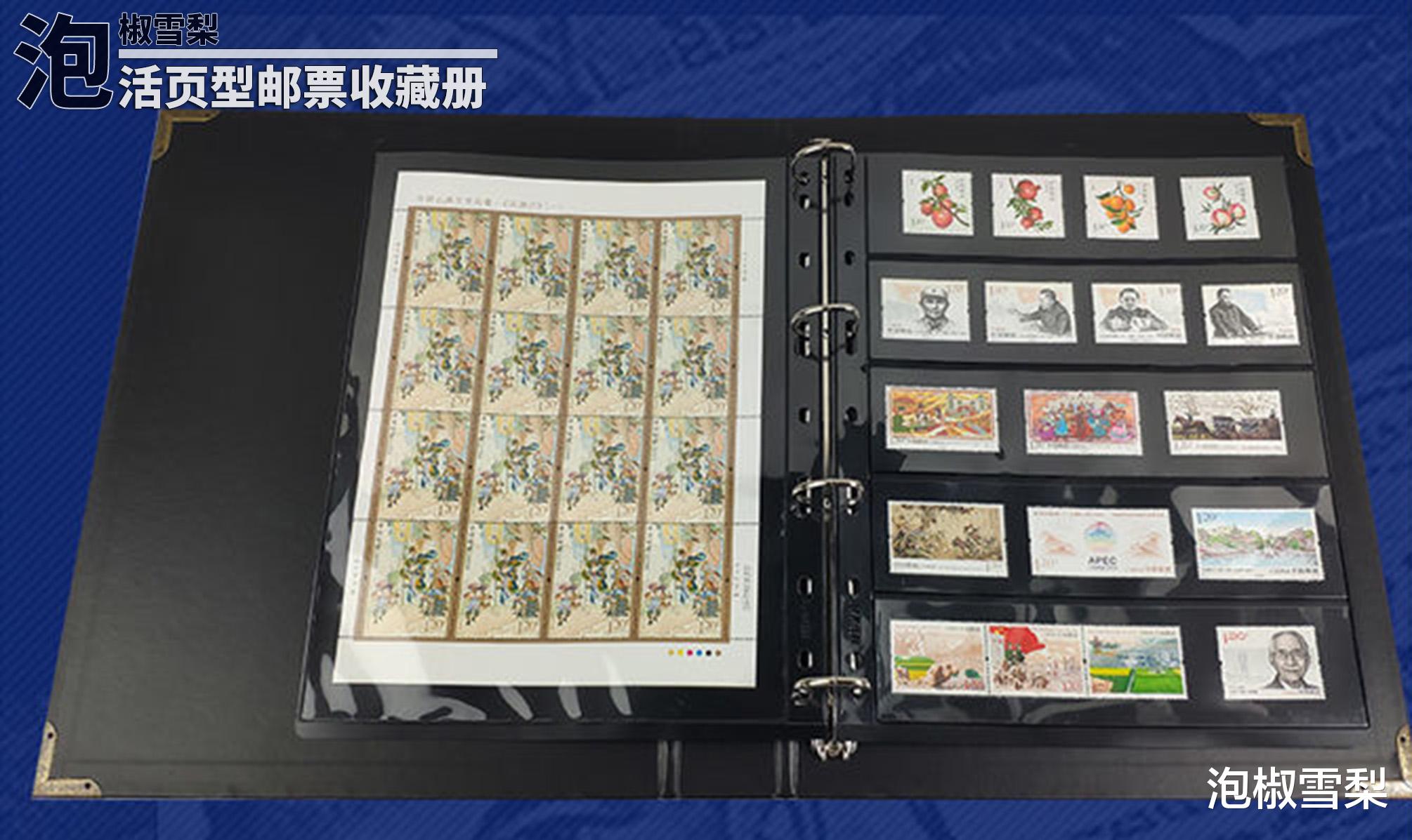 活页的优点是可以根据自己的喜好和邮票的大小进行随意调整,不像装帧好的集邮册,只能按照顺序放入同一类尺寸的邮票,如果遇到套票和小型张的模式,则必须将其分装在不同的邮册中。活页则完美的解决了这个问题,套票、小型张、小版张、大版张,任何版式都可以按照喜好进行排列,同套同系列邮票不用被迫分开。