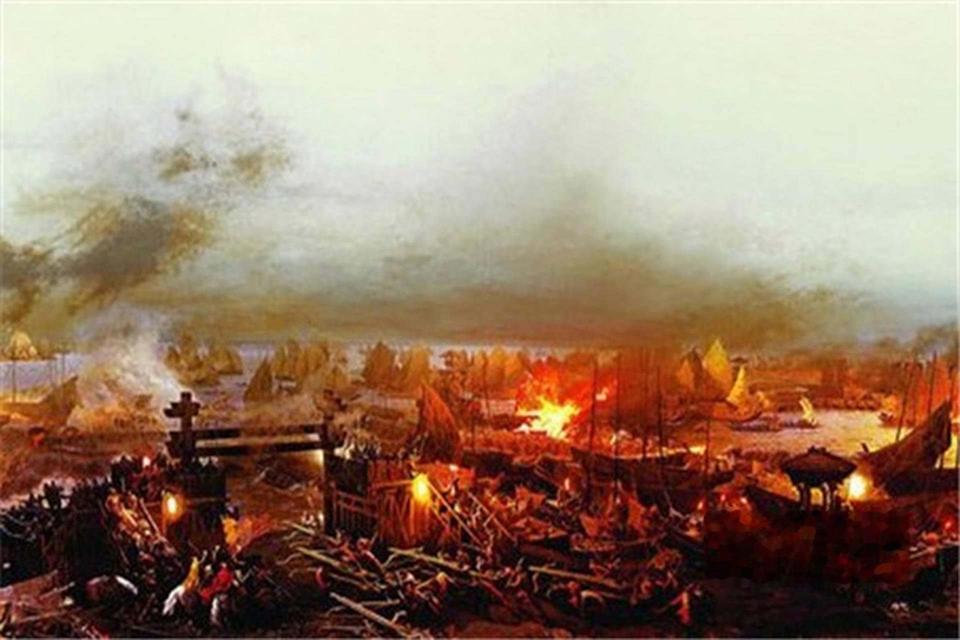 火!首先是星星之火,随即在干燥的茅草和丛林助燃下,变成了燎原之势。东南风猛烈地刮着,将火焰像泼油一样,一片接一片地引向蜀军连绵的营寨。顷刻之间,长江南岸的山林化成了一片火海。