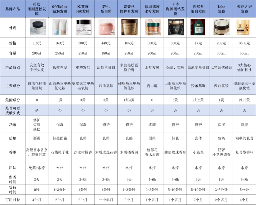 下图是部分我实测过的发膜产品: