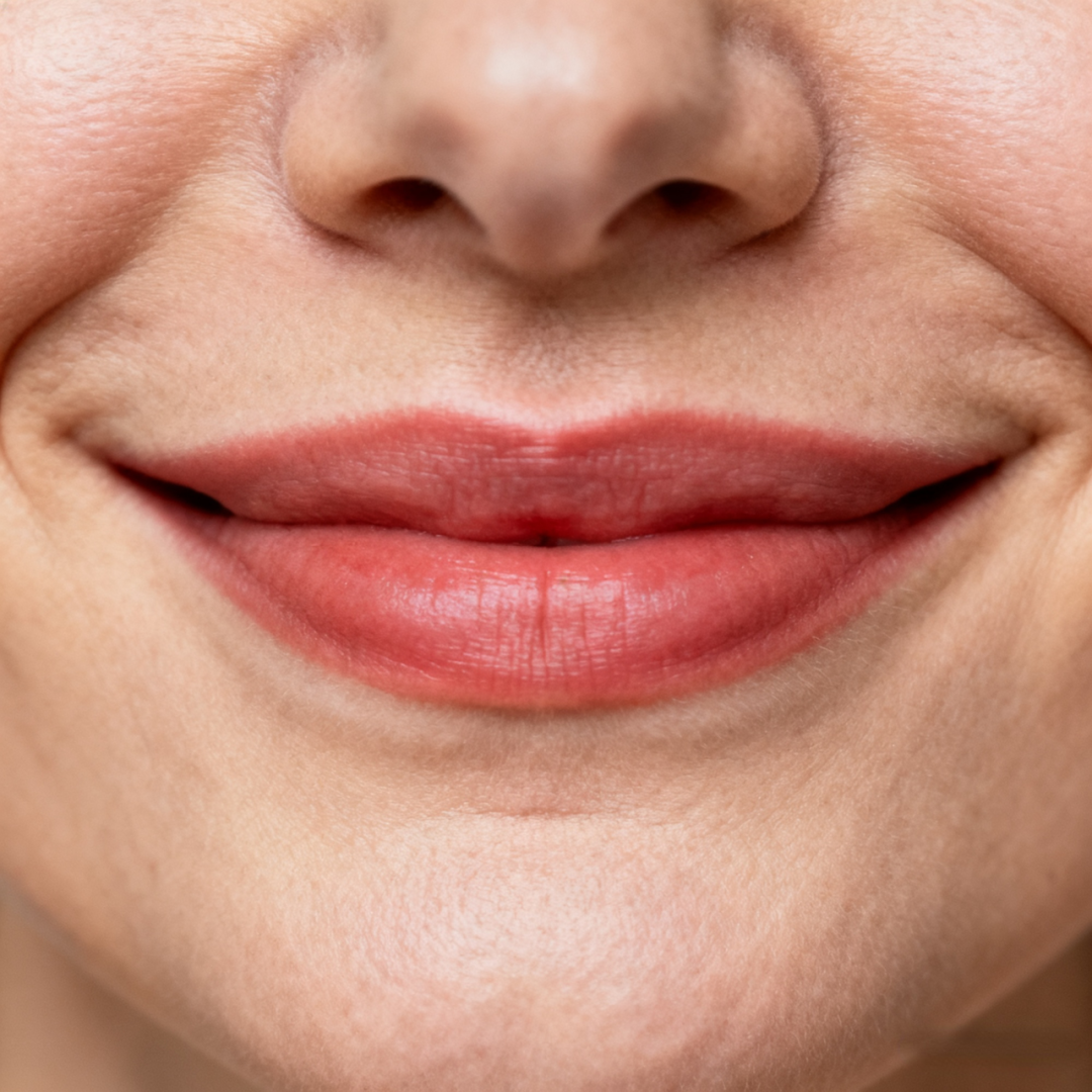 核心特征:嘴角自然微上扬,法令纹(鼻翼延伸至嘴角的纹路)深刻而柔和向下,呈圆弧形。