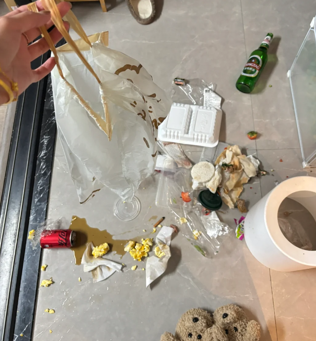 装厨余垃圾的垃圾袋一旦破碎,就会流出汤汤水水,更难清理干净。
