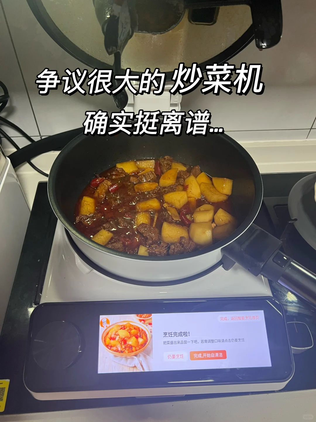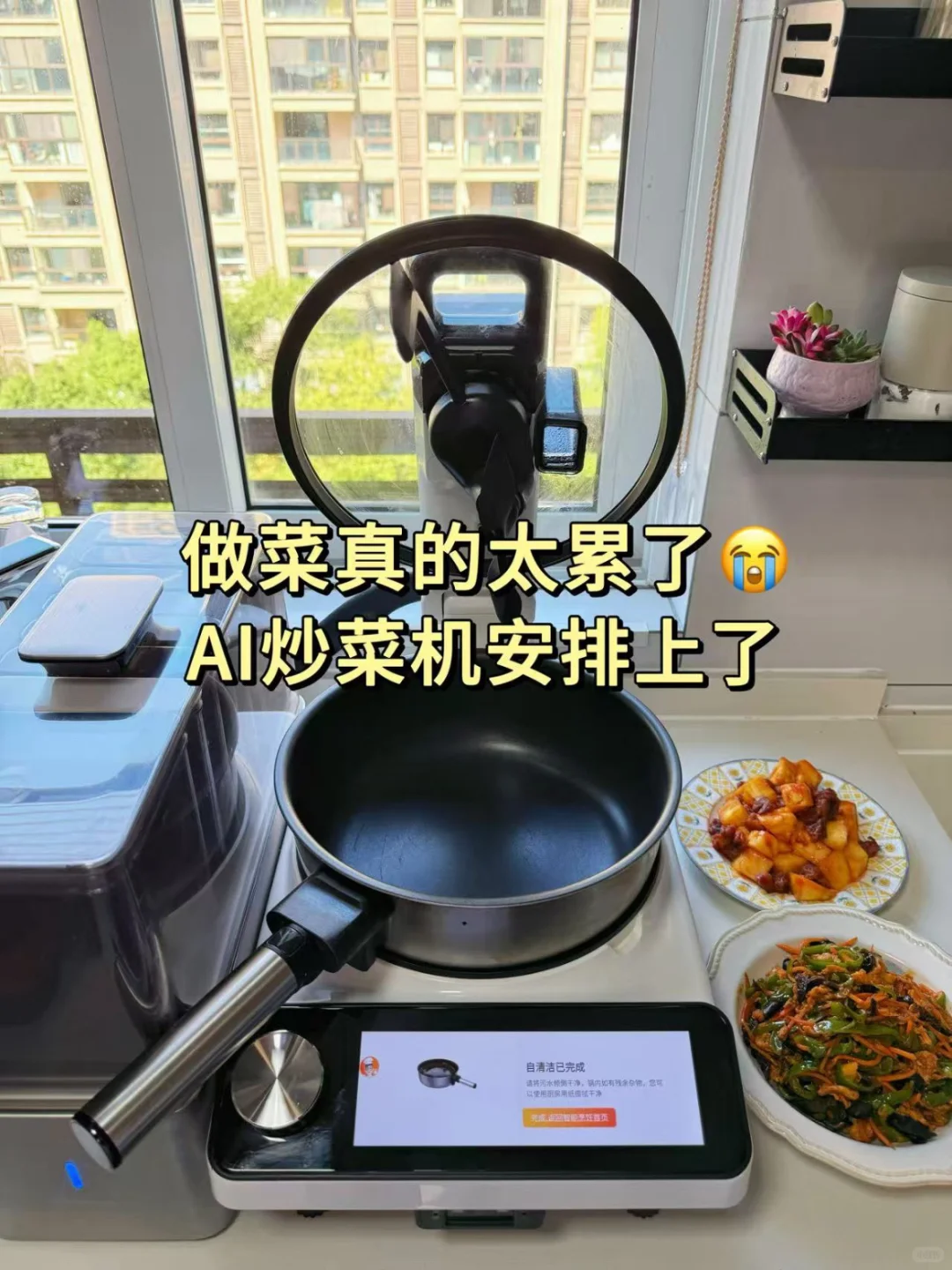 和用传统的厨具+手动烹饪相比,并没有省事多少,反之,前期都要花大笔钱买设备,而且炒菜机容量有限,运行时会发出轰隆隆的噪音……,更容易闲置。