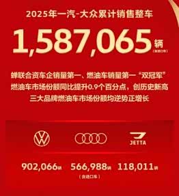合资品牌中,一汽大众全年整车销量1587065辆,蝉联合资车企销量第一、燃油车销量第一。上汽大众全年终端销售106万辆,也达成了年销百万辆的规模。