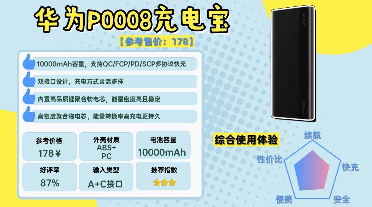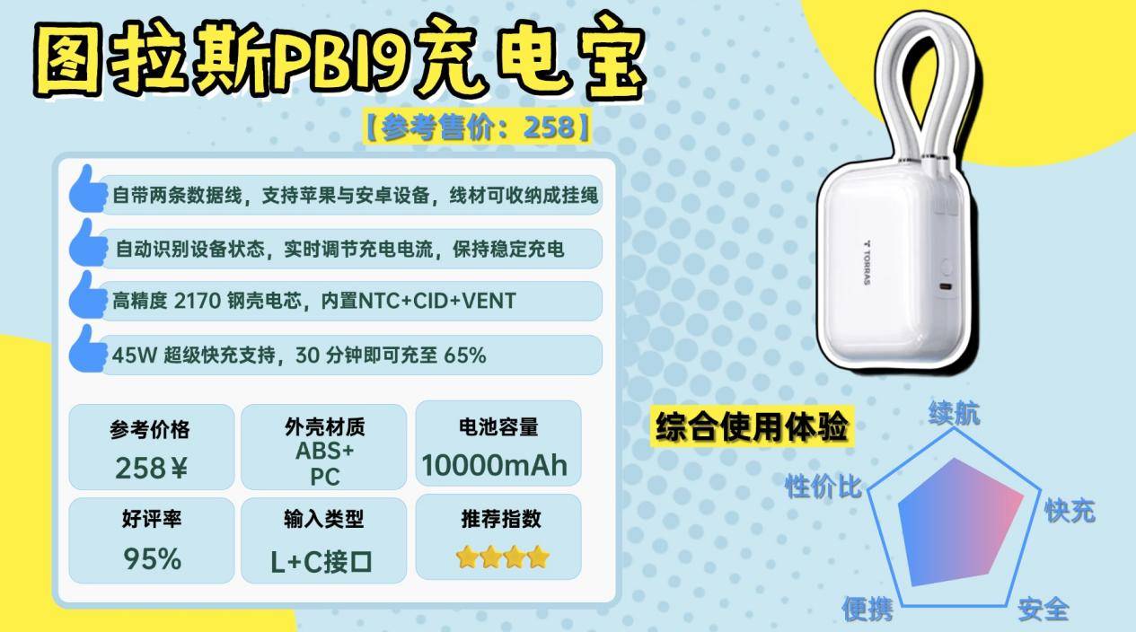 这款的优势主要体现在体积和充电速度之间的平衡。10000mAh容量做得比较紧凑,随身携带压力不大,自带Type-C线的设计也减少了额外带线的麻烦。