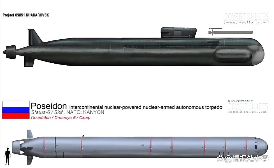 “波塞冬”核动力无人潜航器能下潜至1000米以下深海,以超过现有鱼雷的航速潜行,携带百万吨当量核弹头。它既可攻击沿海城市引发人工海啸,也能打击航母舰队。配套的“哈巴罗夫斯克”号专用核潜艇已于2025年11月下水,标志着俄罗斯水下战略投送能力取得关键进展。