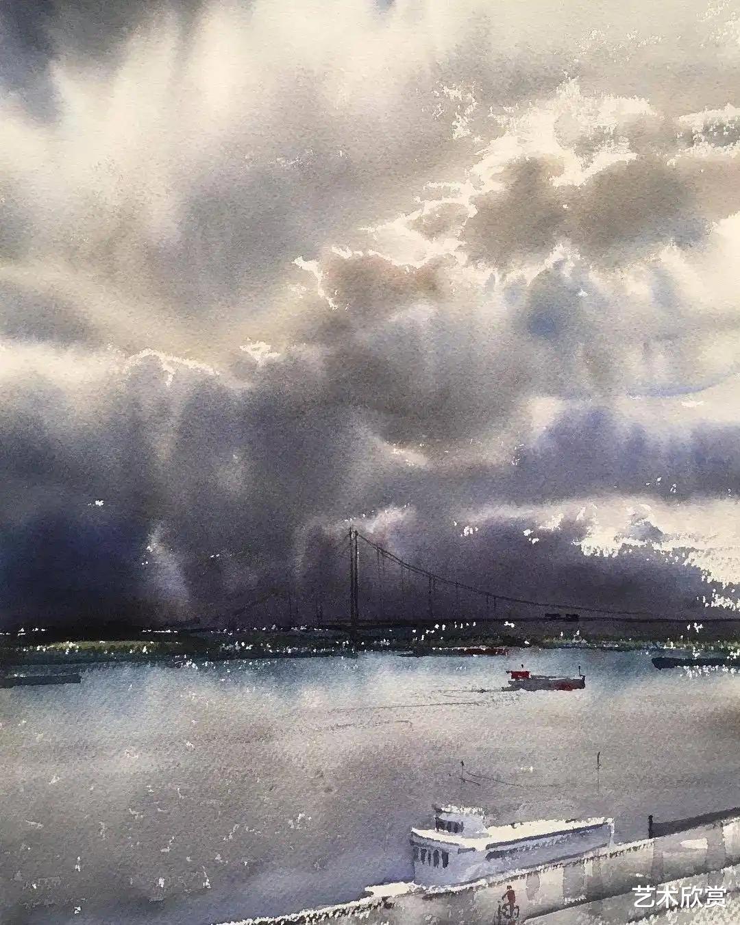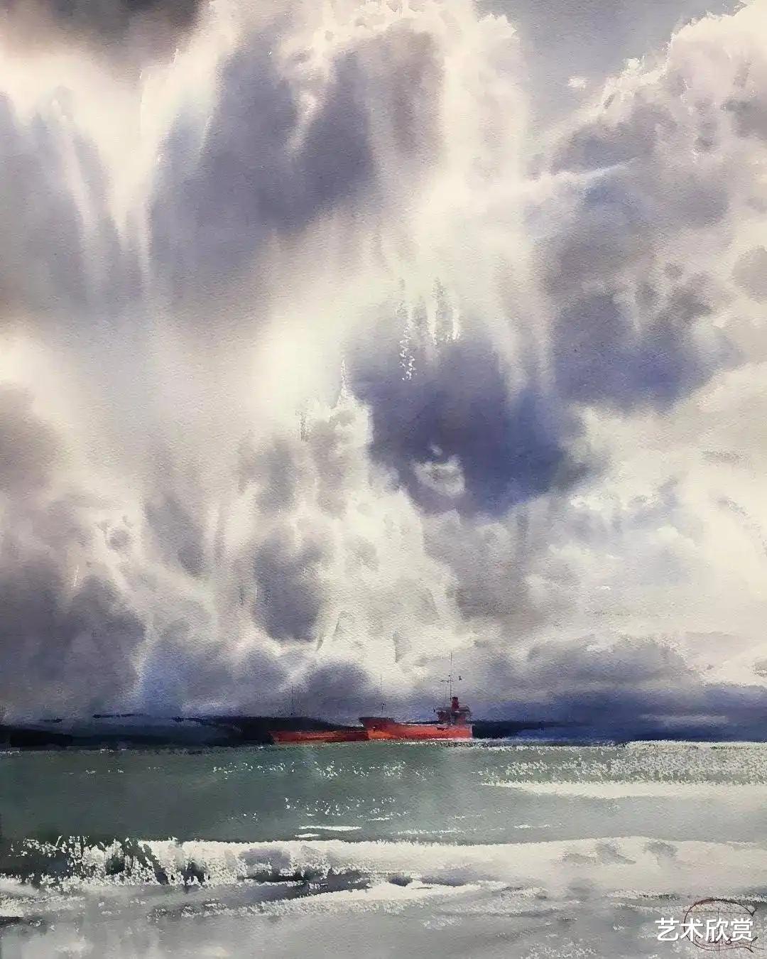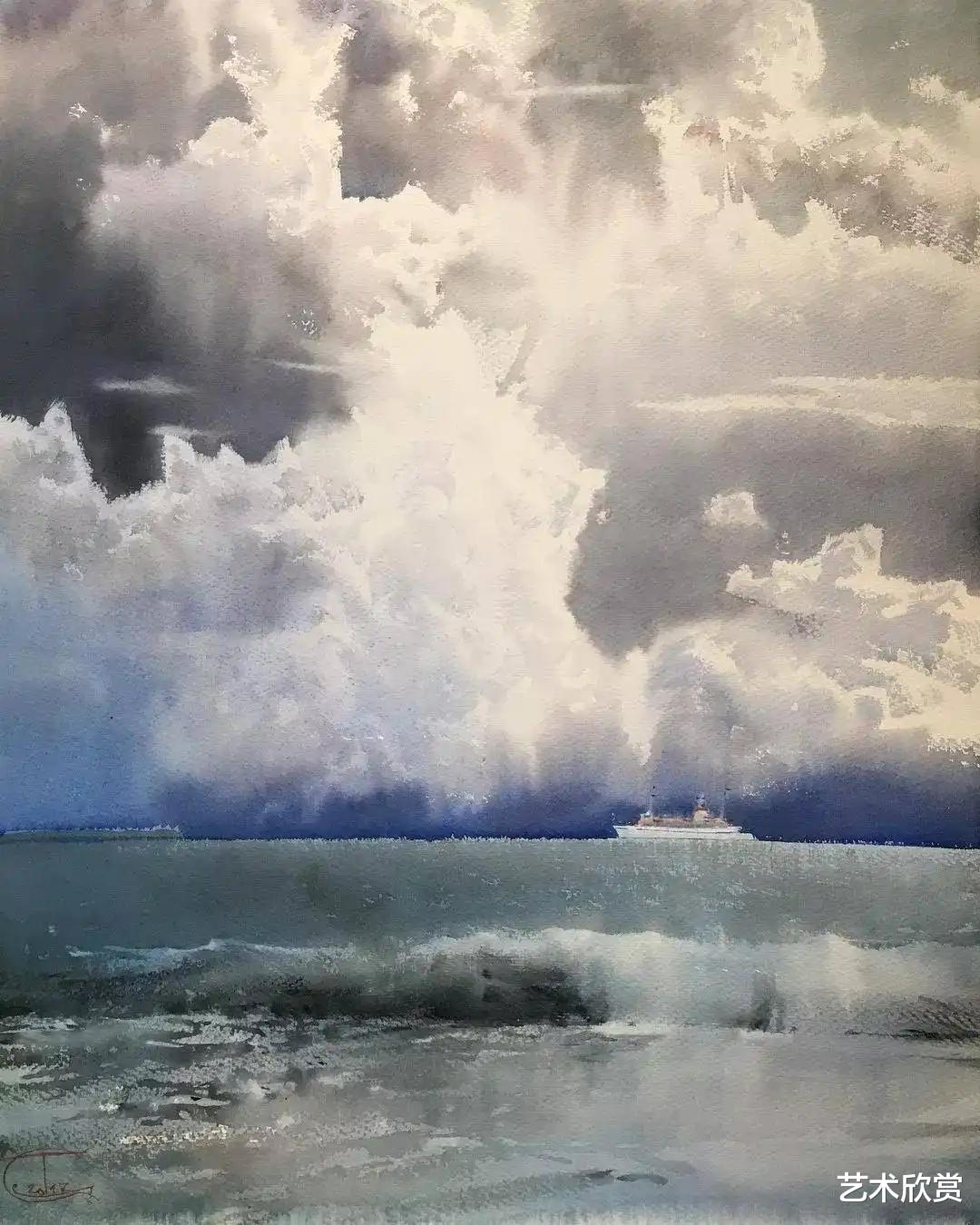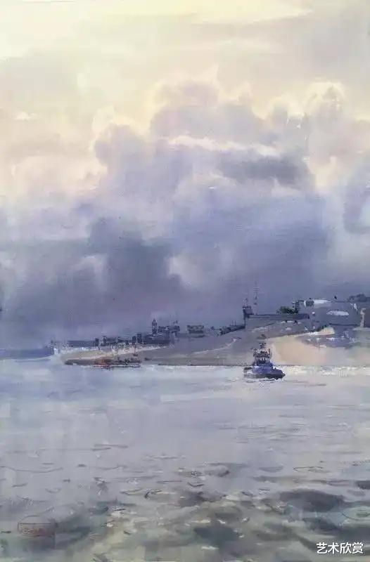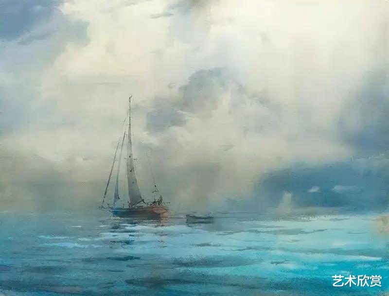 Sergey Temerev的画笔下,大海是永恒的主角。时而如镜,倒映着朝霞的碎金,渔船点缀其间,像散落的音符;时而狂怒,巨浪以雪白的利齿撕咬礁石,让观者的心跳随潮汐起伏。最动人的是那风平浪静的时刻——海鸟掠过水面的弧线,与天际线融为一体,仿佛时间在此凝滞。而云雾,是他画布上最灵动的诗行,淡紫与银灰交织,留白处似有呼吸在流动,让人想起晨雾中若隐若现的远山。