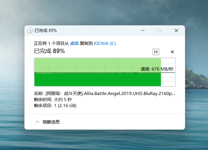 🔺先来看看它的电脑对拷表现,速度为670MB/s左右。至于为什么没有达到宣传的1050MB/s,我查看了下主要是因为我目前测试的电脑不支持UASP传输协议的缘故,不过这个速度我已经很满意了,毕竟比机械盘还是快很多的。