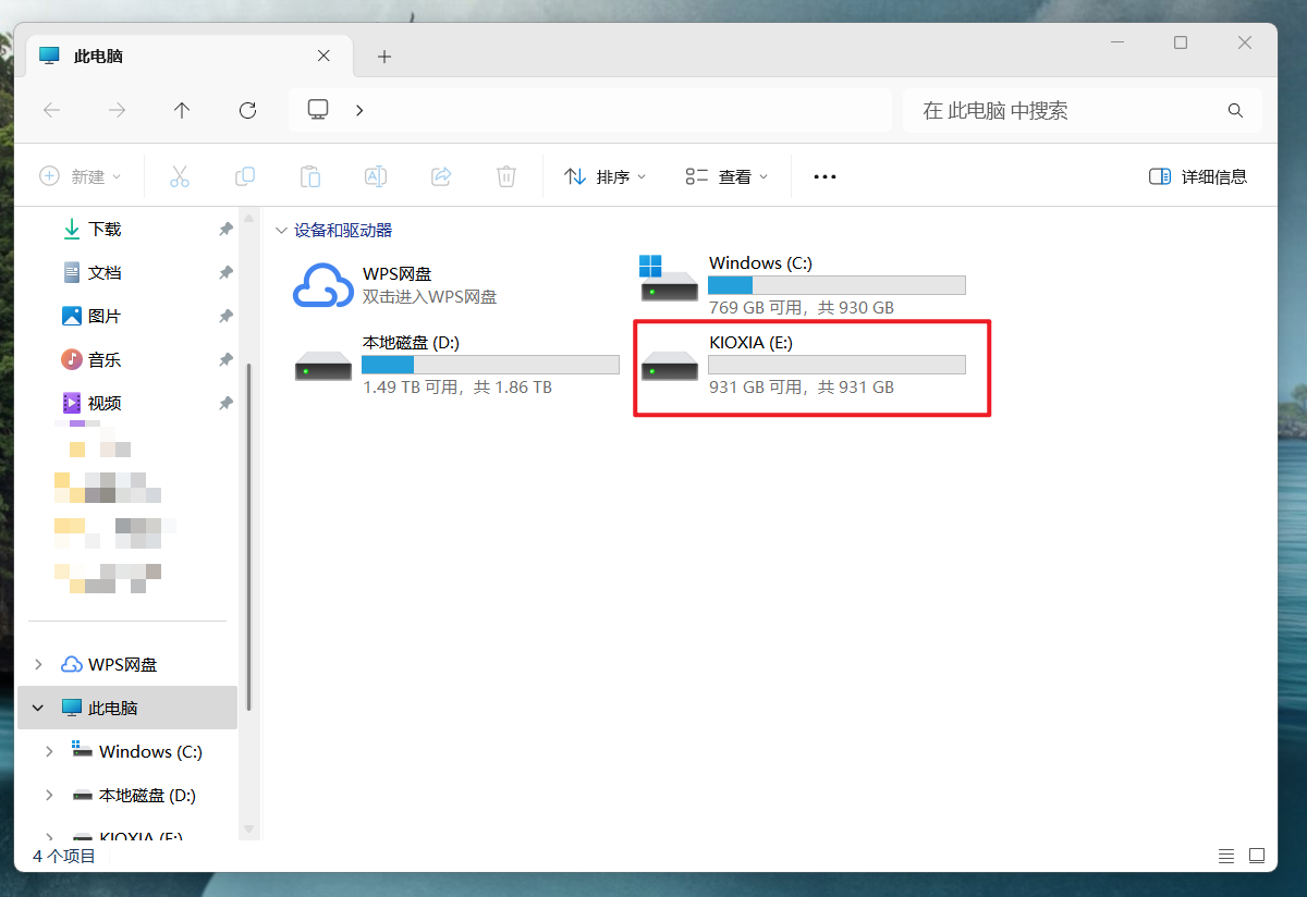 🔺我们直接在常用的Windows电脑主机上实机测试,可以看到铠侠 XD20 移动固态硬盘即插即用,无需驱动,连上之后就能直接读取。显示的容量为931GB,因为硬盘厂家和电脑系统两者的进制算法不一样,1T的硬盘这里显示931GB是完全正常的,不存在虚标的情况。